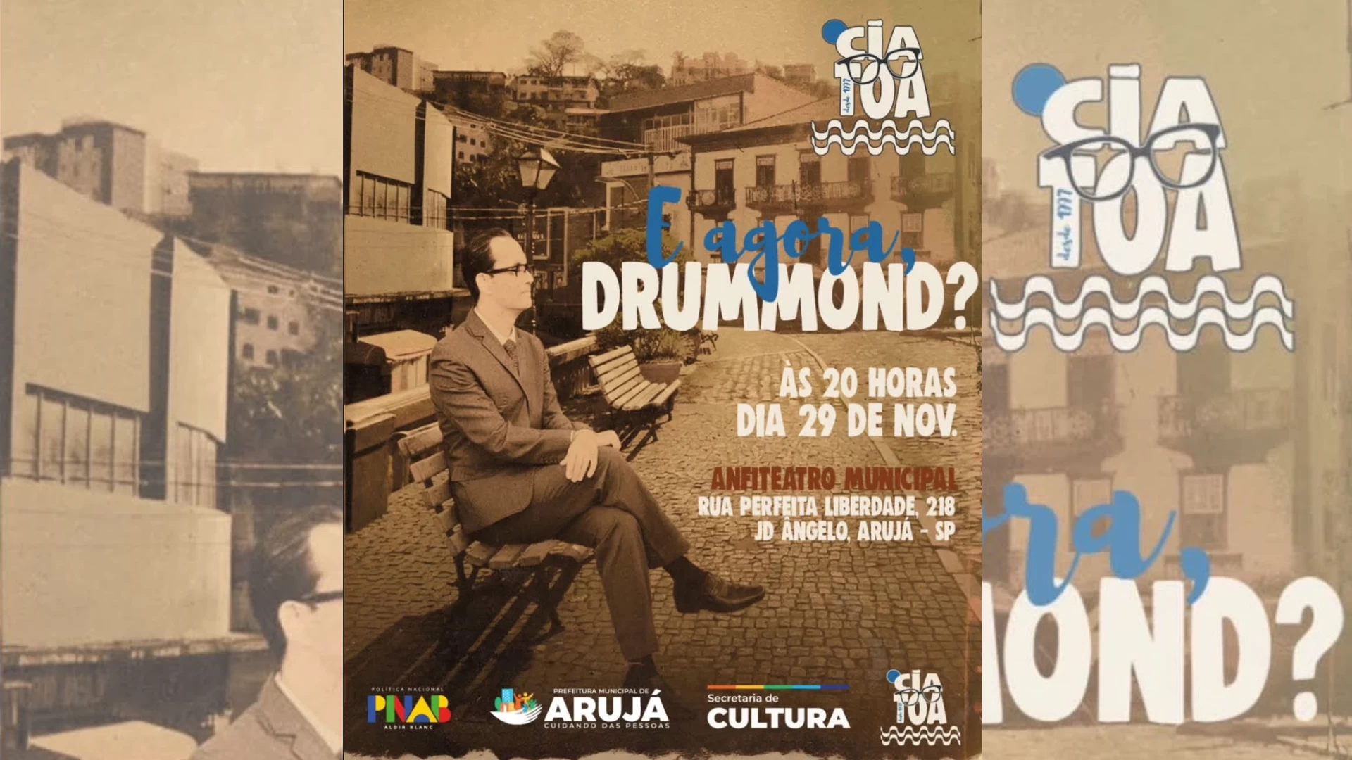 A Prefeitura de Arujá, por meio da Secretaria Municipal de Cultura com incentivo da lei Aldir Blanc, realizará, no próximo sábado (29), o teatro “E Agora, Drummond?”. Com início marcado para às 20h, o evento acontecerá no Anfiteatro de Arujá, localizado na Rua Perfeita Liberdade, 233, no bairro Jardim Ângelo.