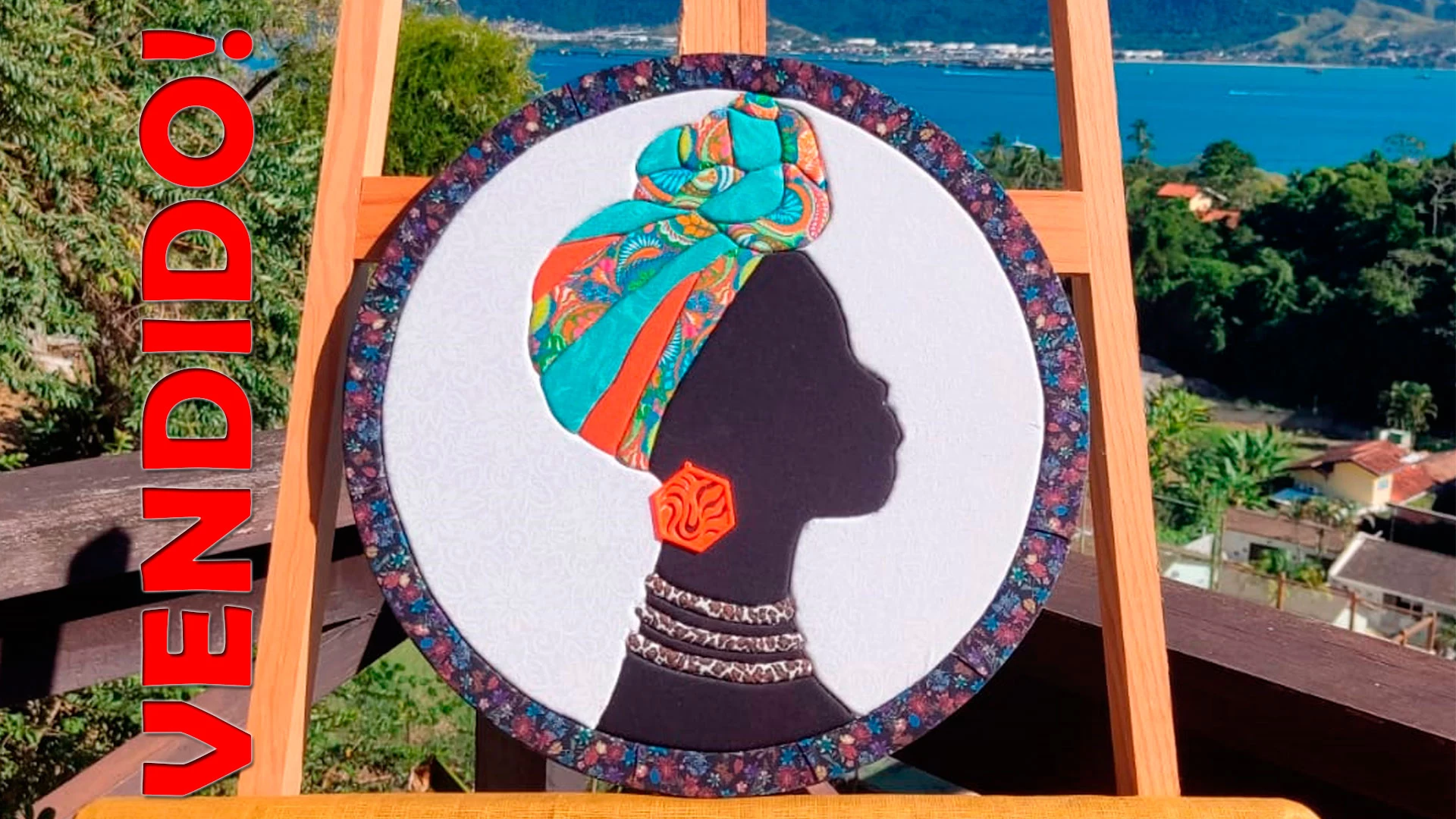 Exposição Africanas Quadro: Arabela Tamanho: 35cm Artista: Camila Mendes Técnica: Patchwork Embutido Instagram: camilamendes.art