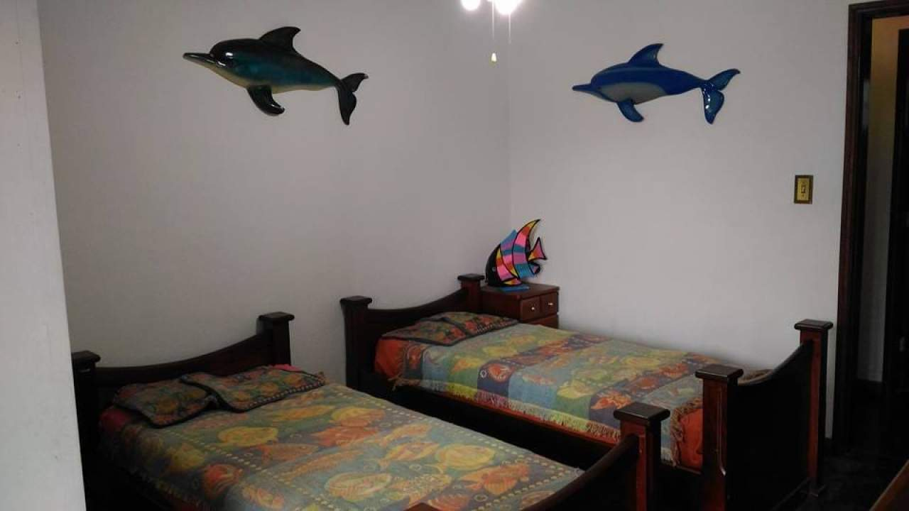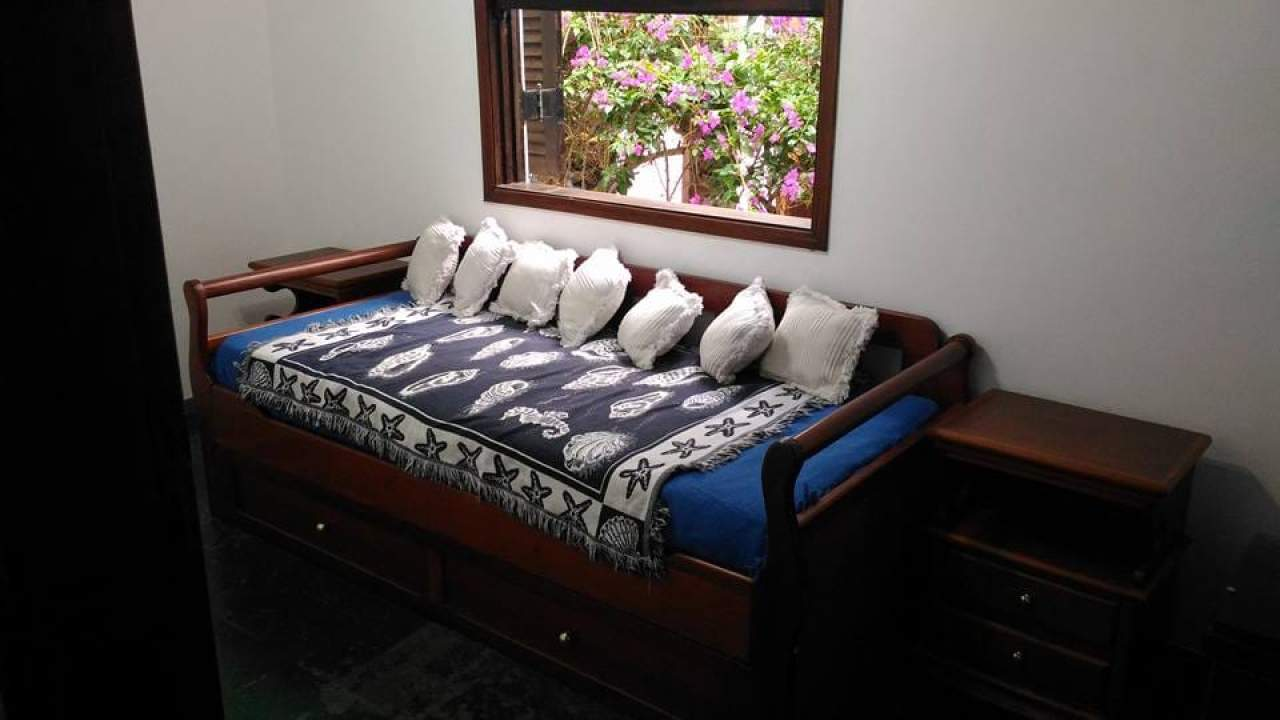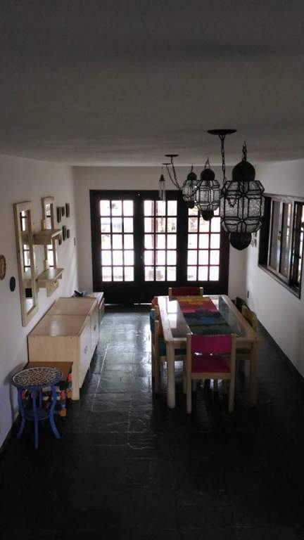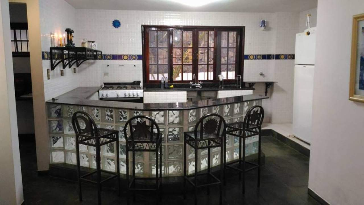 Casa com 4 dormitórios na parte superior. Sendo 2 suítes e 2 quartos com um banheiro. No andar superior 3 dormitórios com varanda. Andar inferior : sala ampla em desnível com lareira e sala de estar ampla com varanda , Sala de jantar com cozinha americana , portas de frente para piscina . Depósito, lavabo, lavanderia, quarto de empregada com banheiro. Mais um andar inferior: salão amplo (100 metros quadrados)que pode ser utilizado como área de Salão de jogos ou salão de festas . Área externa atrás da casa : piscina com cascata e Led. Banheiro. Churrasqueira ampla . Área verde com árvores frutíferas, que vão até a cachoeira. Está toda cercada com alambrando.