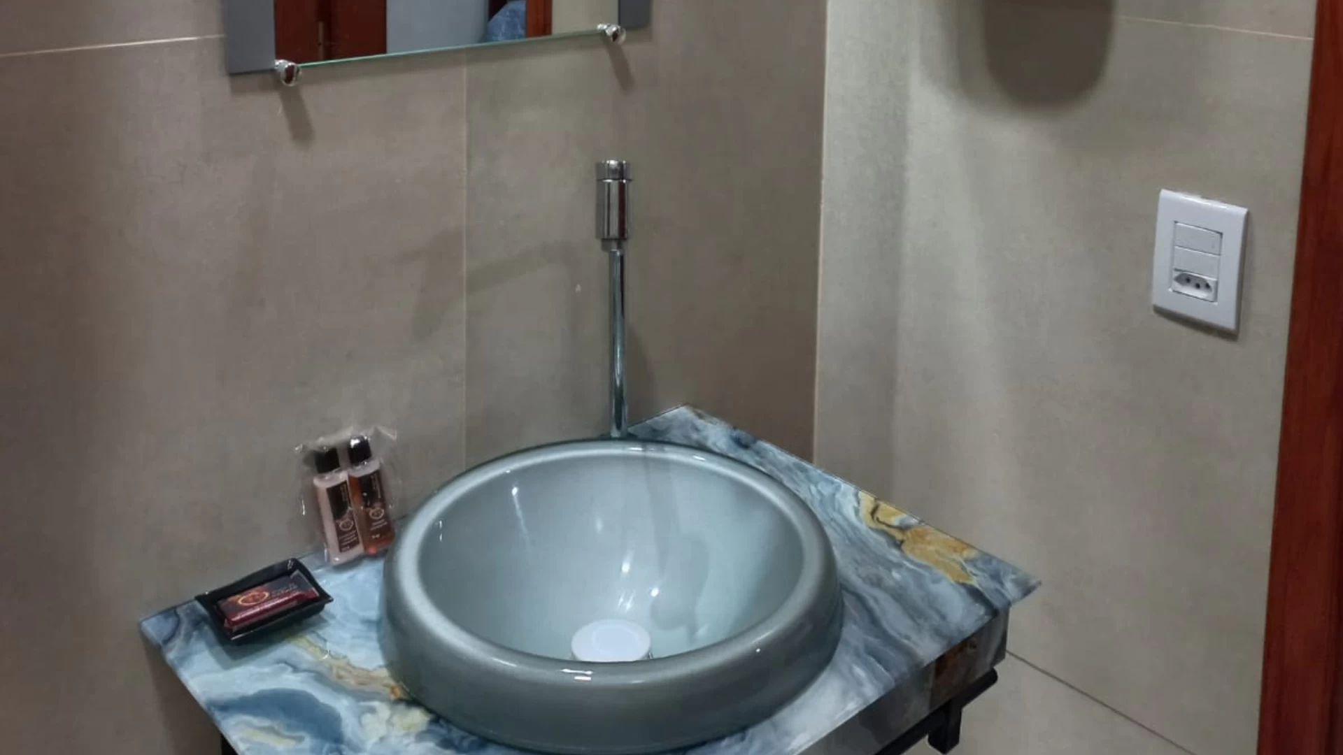 Contamos com um banheiro confortável, chuveiro elétrico, secador de cabelos, kit de shampoo, condicionador e sabonete, 2 rolos de papel higiênico.