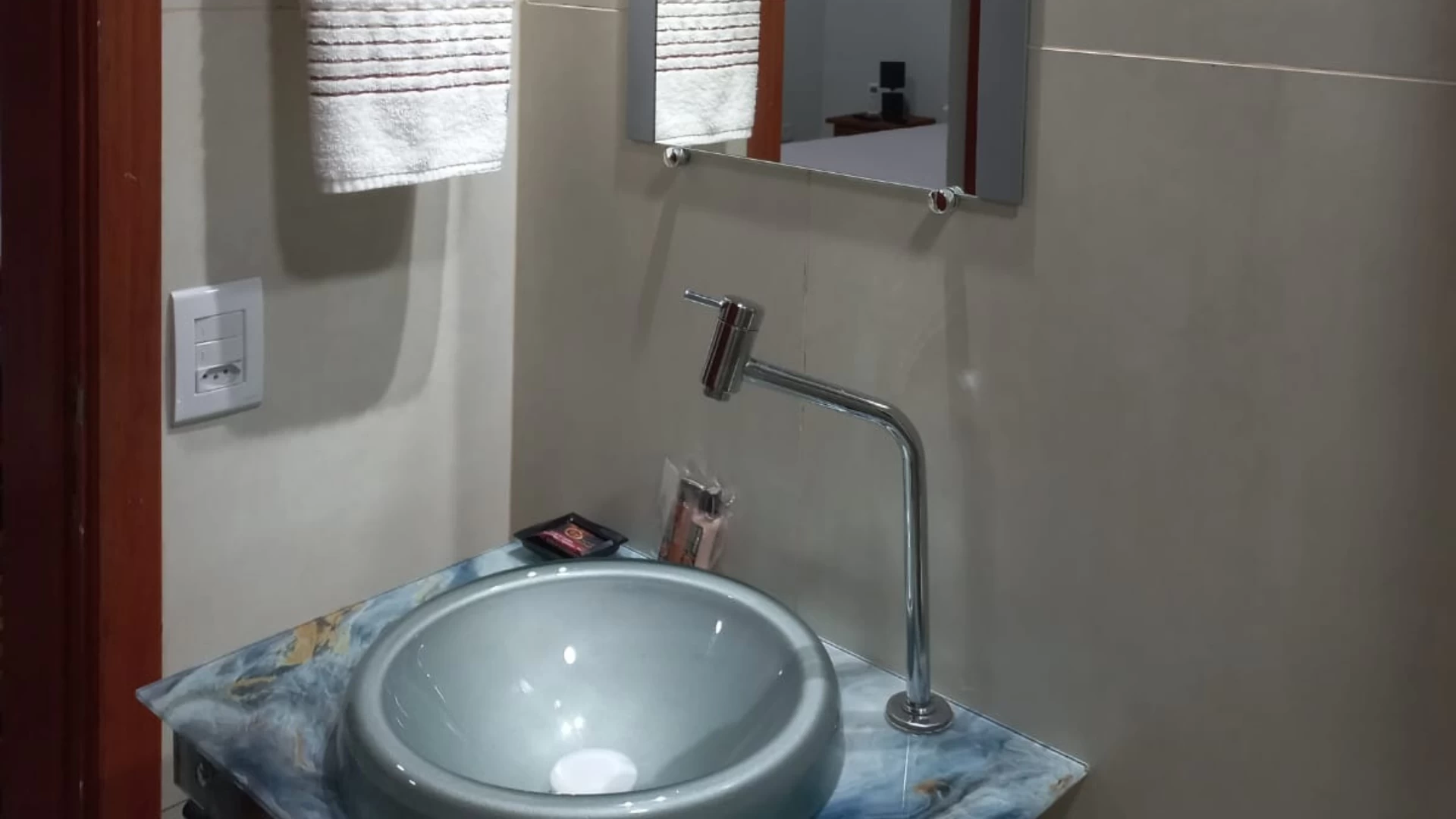 Contamos com um banheiro confortável, chuveiro elétrico, secador de cabelos, kit de shampoo, condicionador e sabonete, 2 rolos de papel higiênico.