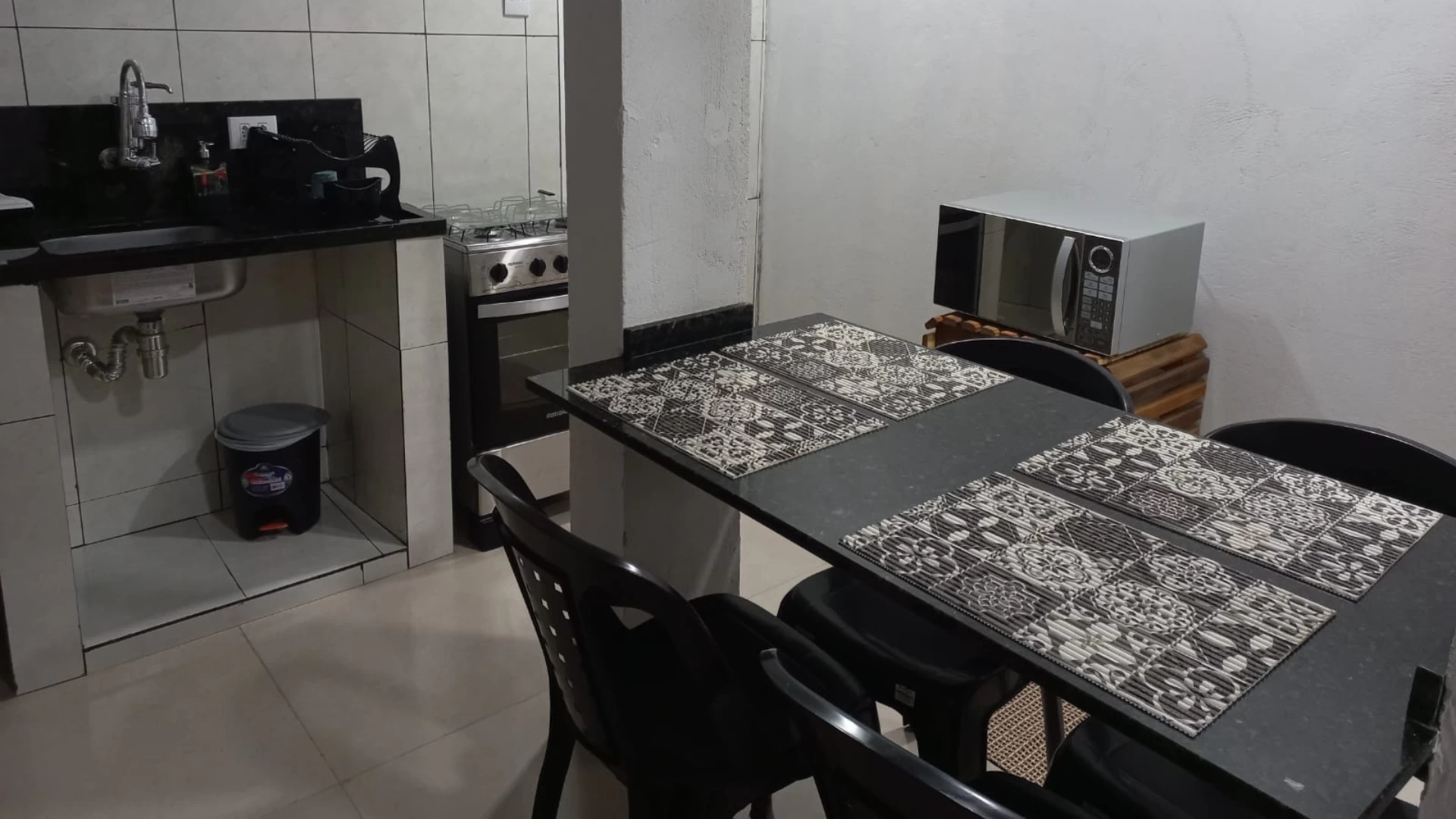 Aceitamos pets, desde que estejam o tempo todo acompanhados dos tutores. Temos lavanderia com tanque, varal, prendedores, vassoura, rodo, pá de lixo, pano de chão, ferro e tábua de passar roupas. Oferecemos cooler, baldinho de praia e bóia de braço para uso nos passeios. Oferecemos roupa de cama e toalhas sem trocas durante a estadia. Cada chalé tem 4 travesseiros e 4 mantas. Contamos com um banheiro confortável, chuveiro elétrico, secador de cabelos, kit de shampoo, condicionador e sabonete, 2 rolos de papel higiênico. Entregamos a acomodação limpa, mas não realizamos limpezas durante a estadia. Temos cabideiro para roupas com 4 cabides Na cozinha estão à disposição diversos itens para uso, confira! Oferecemos uma churrasqueira na frente do Chalé 3 com 4 espetos e 1 grelha. O uso é livre para os hóspedes do Chalé 3.