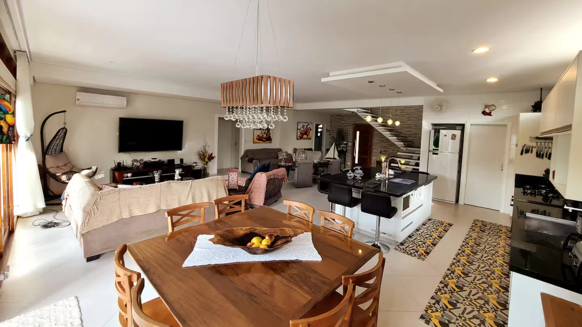 Casa de alto padrâo com conceito aberto, integrando áreas interna e externa e criando um deslumbrante e espaçoso ambiente perfeito para reunir amigos e familiares. Deck com vista para o mar, deliciosa piscina e incrível área para churrasco. Toda a casa foi decorada e equipada para oferecer muito conforto. Localização ideal, permitindo ir a pé para três das melhores praias do Sul; Feiticeira, Julião e Praia Grande. Tb próxima a cachoeiras, excelentes restaurantes, padaria, farmácia e mercados. O espaço A casa com conceito aberto, integra a area externa com interna, criando um área espaçosa e perfeita para toda a família. Sendo o deck com um maravilhosa vista para o mar, linda piscina e uma incrível area gourmet. https://www.airbnb.com/h/paradiseilhabela