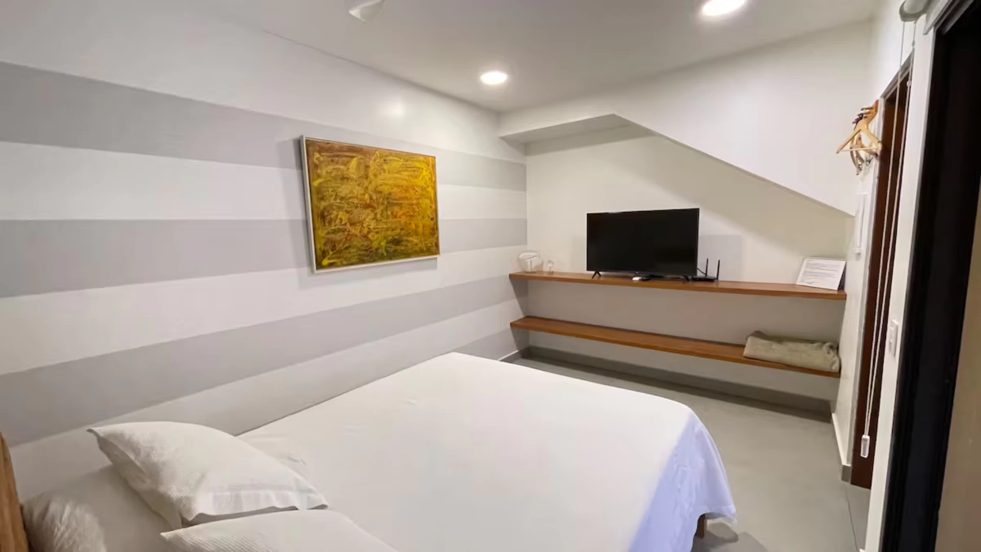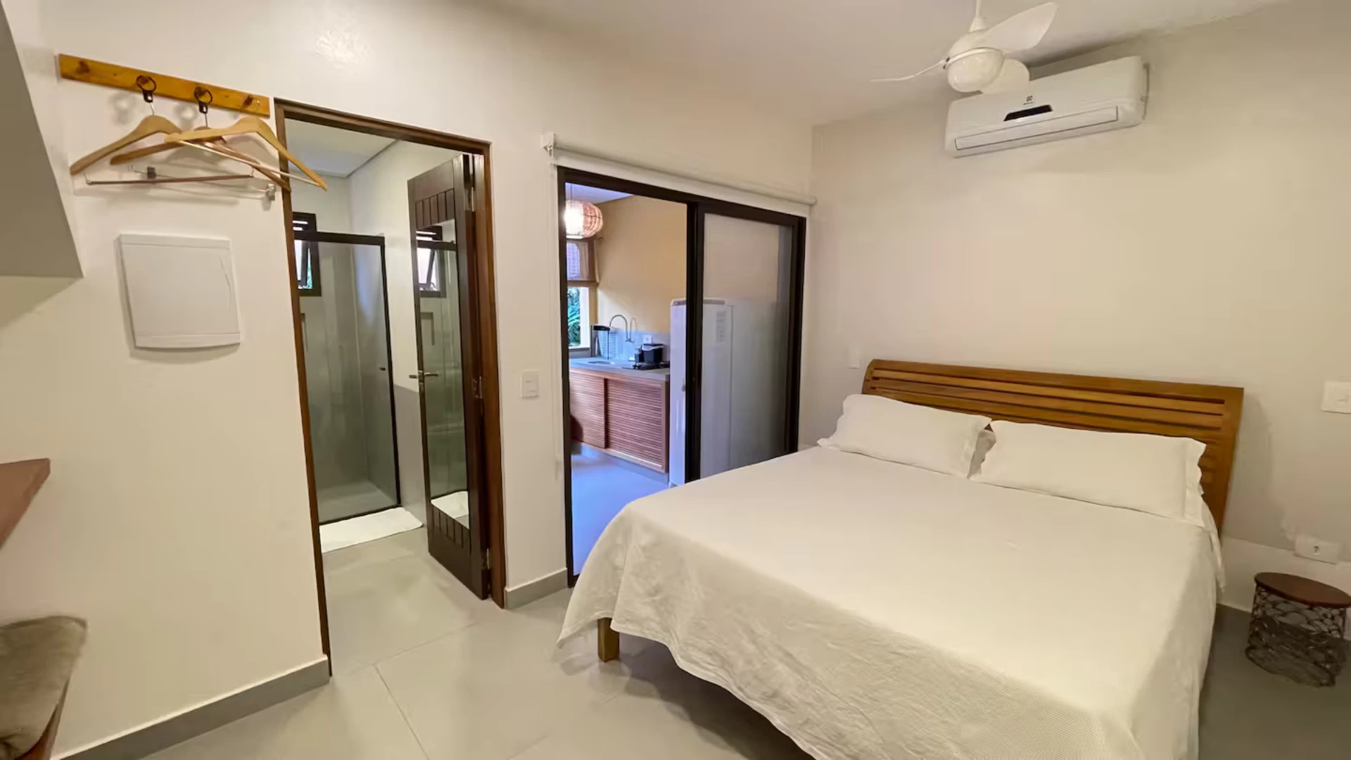 Anfitriã Nina: (11) 98199-6856 Studio 1 piso térreo varanda com cozinha Suíte p/ duas pessoas bem pertinho do mar! Aproxi 250 metros da praia da Feiticeira. Não indicado para menores de idade. Animais de pequenoporte sob consulta Relaxe neste lugar único e tranquilo Banheiro com chuv eletrétrico Apto com cama Queen, smart Tv, ar condicionado, ventilador de teto, roupas de cama e banho. Varanda equipada para o preparo de refeições com cooktop, microondas, geladeira e diversos utensílios. Não é permitido uso de churrasqueira portátil @villafarinailhabela O espaço Nosso espaço foi pensado com muito carinho para recebe-los em nossa casa. Na área comum, piscina com hidromassagem. Uso da piscina das 8:00 às 22:00. Filtro de água com água gelada na área comum, perto da piscina. Banheiro confortável com secador de cabelo, roupa de banho e chuveiro elétrico. https://www.airbnb.com/l/Ndl9bX4O