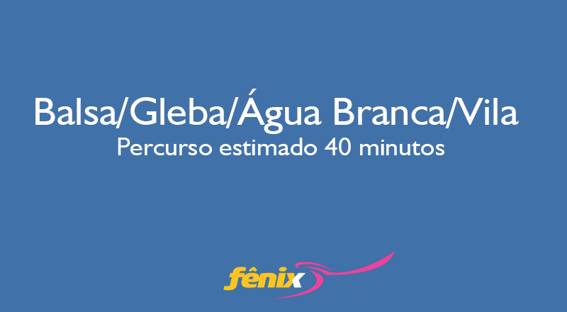 Balsa/Gleba/Água Branca/Vila - Percurso estimado 40 minutos