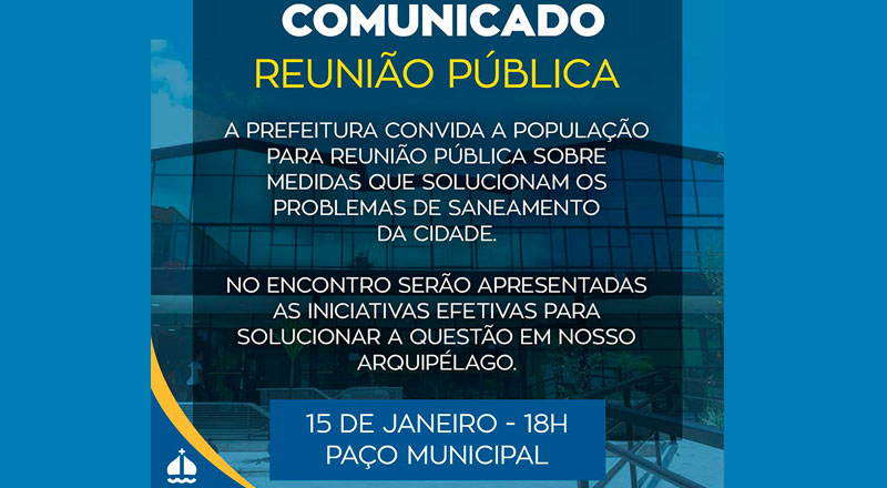 A Prefeitura de Ilhabela, por meio da Secretaria de Meio Ambiente, convida a população para reunião pública de apresentação de propostas para a problemática do saneamento básico na cidade, amanhã (15). A reunião será às 18h, no auditório do Paço Municipal, no Perequê.