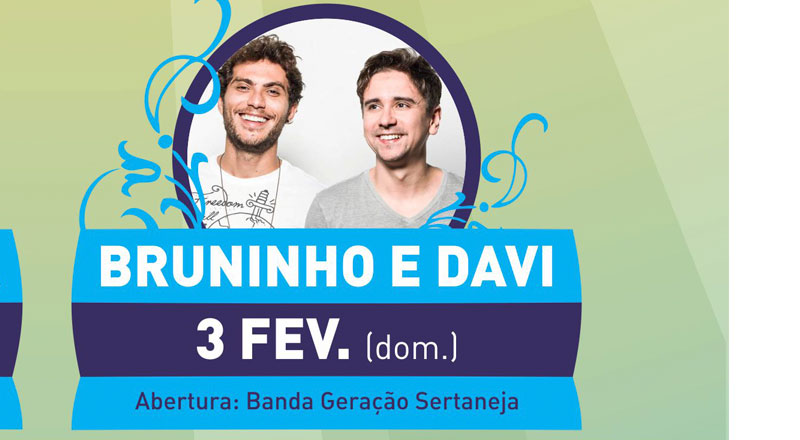 Já no dia 3, a dupla de cantores e compositores sertanejos, Bruninho & Davi, canta seus grandes sucessos.