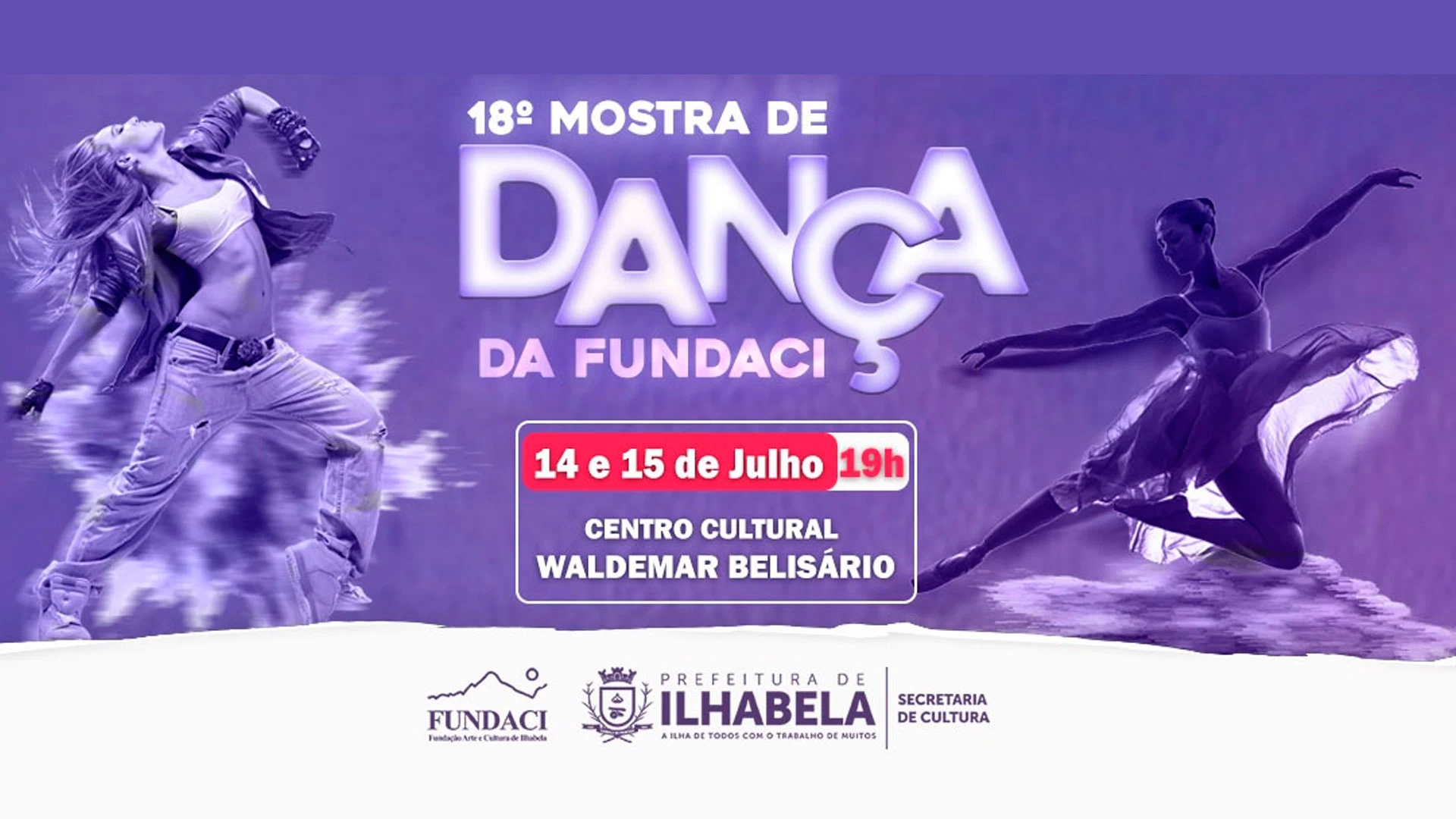 A 18ª Mostra de Dança é um evento realizado pela Fundação Arte e Cultura de Ilhabela, em parceria com a Prefeitura Municipal de Ilhabela, por intermédio da Secretaria de Cultura, tendo como objetivo incentivar a dança e valorizar a criação coreográfica expressiva, revelando talentos na Arte e promover o intercâmbio cultural entre os grupos participantes.