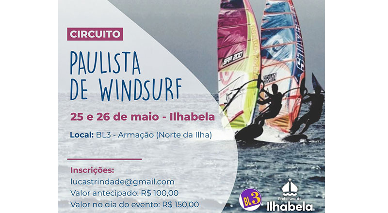 A Prefeitura de Ilhabela, por meio da Secretaria de Esporte e Lazer, apoia mais uma vez o evento “Circuito Paulista de Windsurf”, em sua 2ª etapa, que acontece nos dias 25 e 26, na Praia da Armação, região Norte do arquipélago.