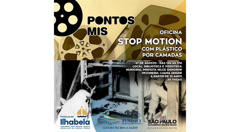 O Museu da Imagem e do Som do Estado de São Paulo (MIS), em parceria com a Prefeitura de Ilhabela, por meio da Secretaria de Cultura, realiza, no próximo dia 27 deste mês, a oficina “Stop Motion com Plástico por Camadas”, das 13h às 17h, na Biblioteca e Videoteca Municipal Prefeita Nilce Signorini, na Barra Velha.
