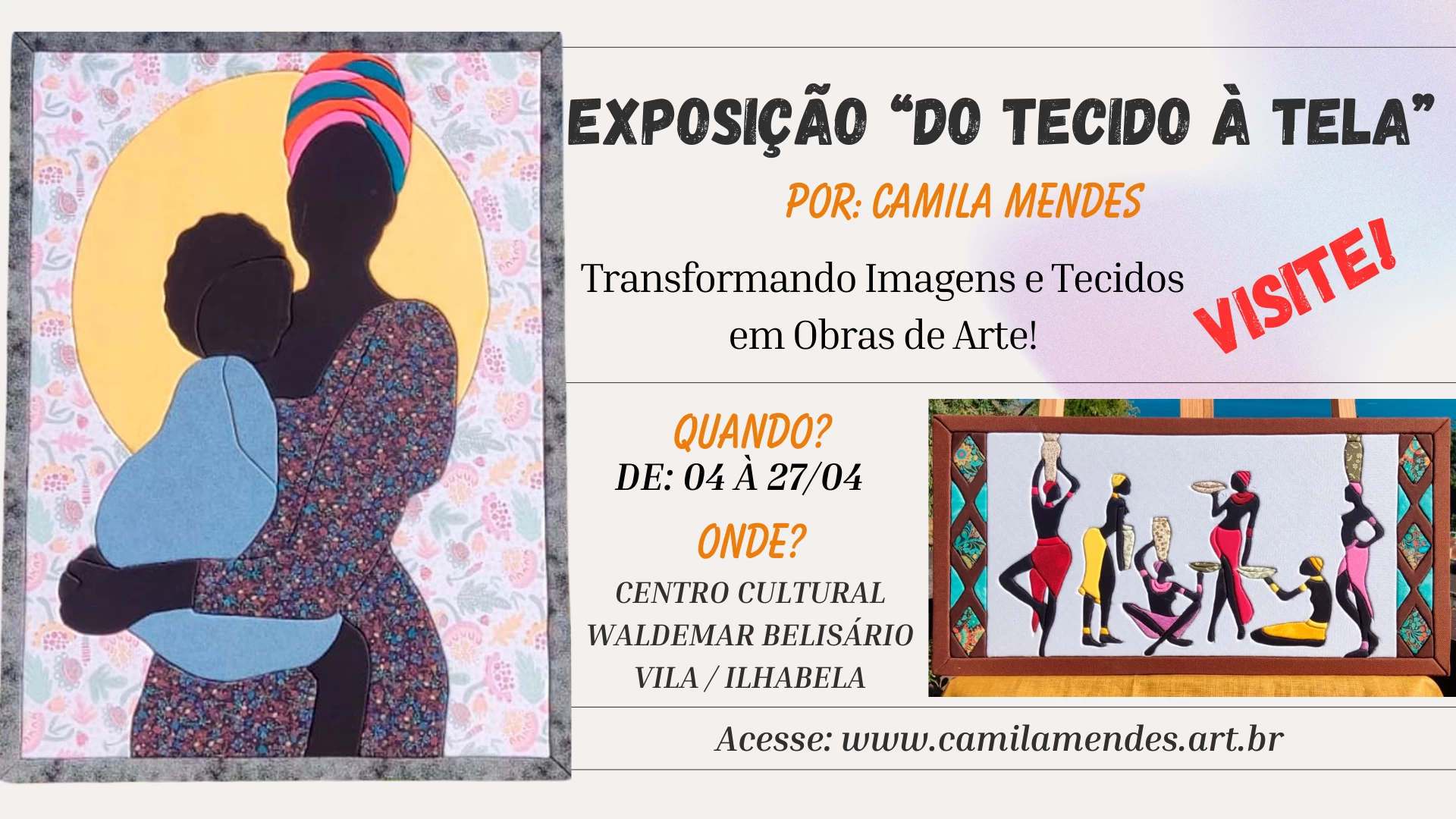 É com muita alegria que convido vocês para a minha exposição "Do Tecido à Tela", no Museu Waldemar Belisário, em Ilhabela.