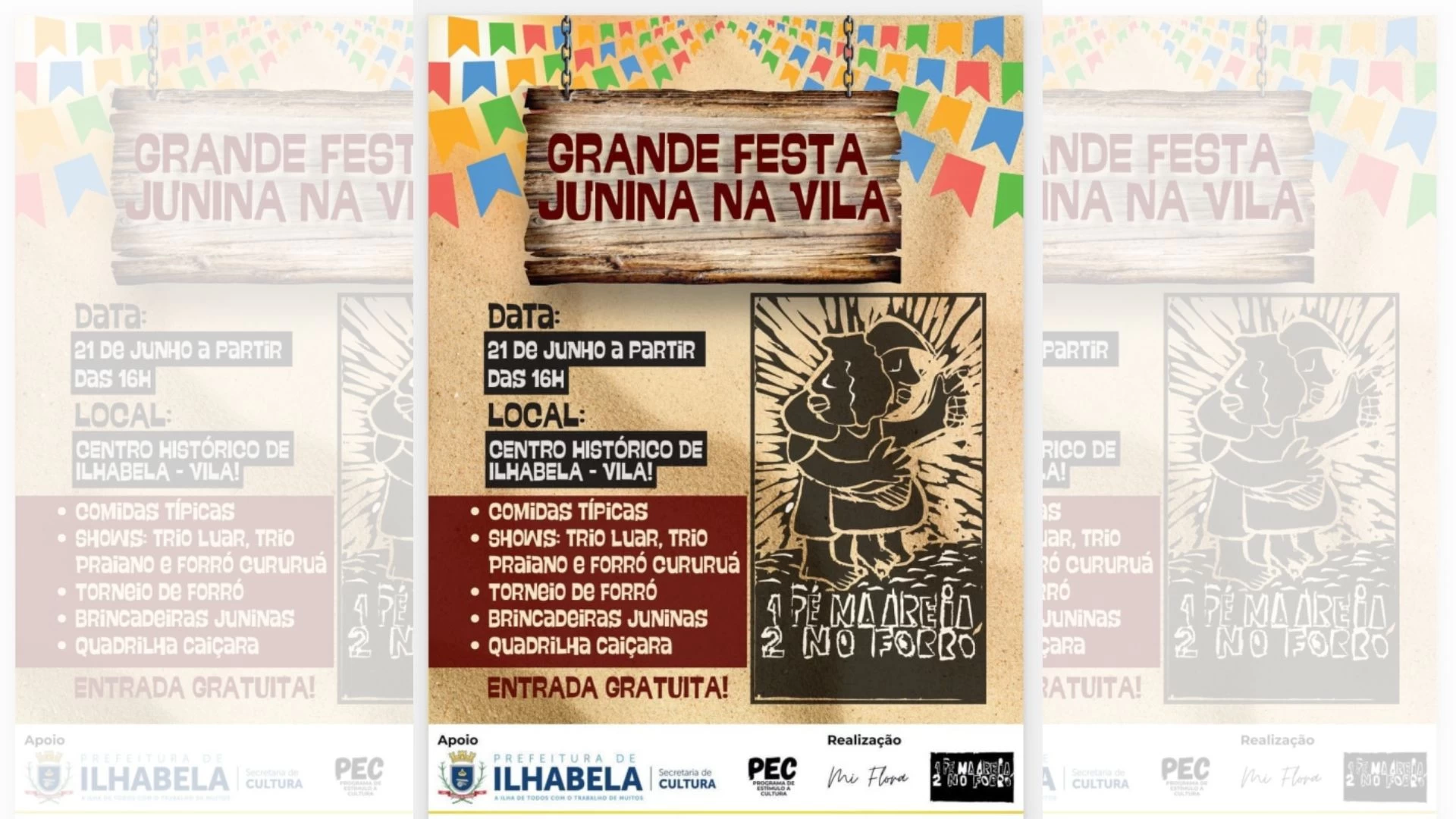 Neste sábado (21), a partir das 11h, a quadra do Centro Cultural Waldemar Belisário, na Vila, será palco da Grande Festa Junina. Integrado ao projeto “1 Pé na Areia, 2 no Forró”, o evento comemora a migração nordestina e sua contribuição para a cultura caiçara de Ilhabela, ao reunir gastronomia, dança, música, oficinas e tradições populares e promover um verdadeiro encontro de identidades e saberes.