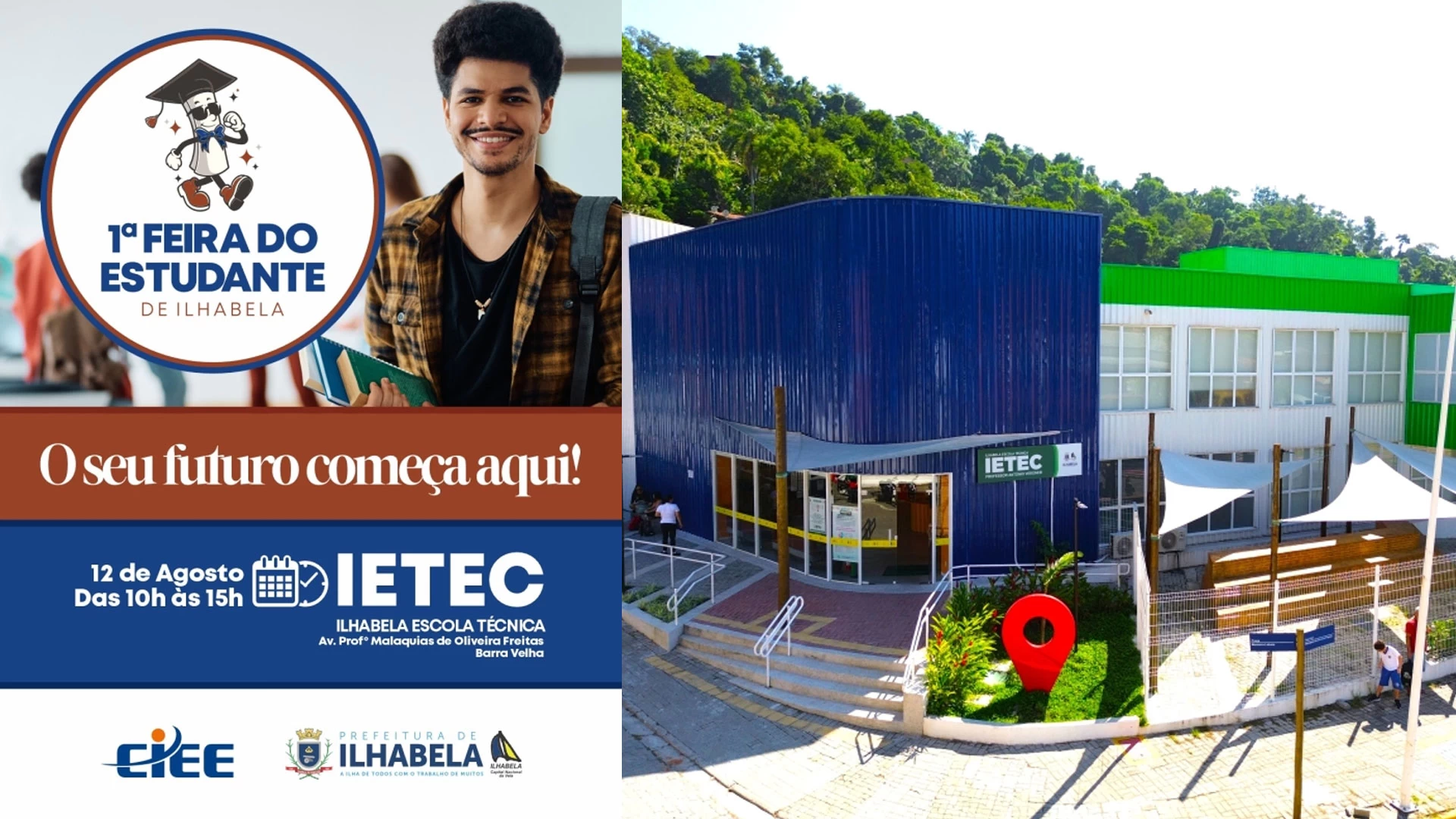 No dia 12 de agosto, das 10h às 15h, a Ilhabela Escola Técnica (IETEC) será palco da Feira do Estudante de Ilhabela 2025, promovida pelo Centro de Integração Empresa-Escola (CIEE) com apoio da Prefeitura de Ilhabela. O evento tem entrada gratuita e é aberto ao público, reunindo instituições de ensino e oportunidades para quem busca qualificação e inserção no mercado de trabalho.