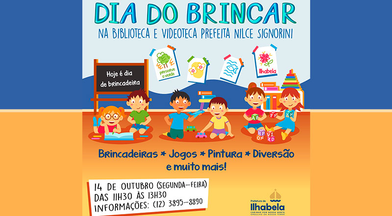 A direção da Biblioteca e Videoteca Prefeita Nilce Signorini, na Barra Velha, organiza o Dia do Brincar, em homenagem ao Dia das Crianças (celebrado em 12 de outubro). O Dia do Brincar será realizado na próxima segunda-feira (14), das 11h30 às 13h30, no prédio da Biblioteca.