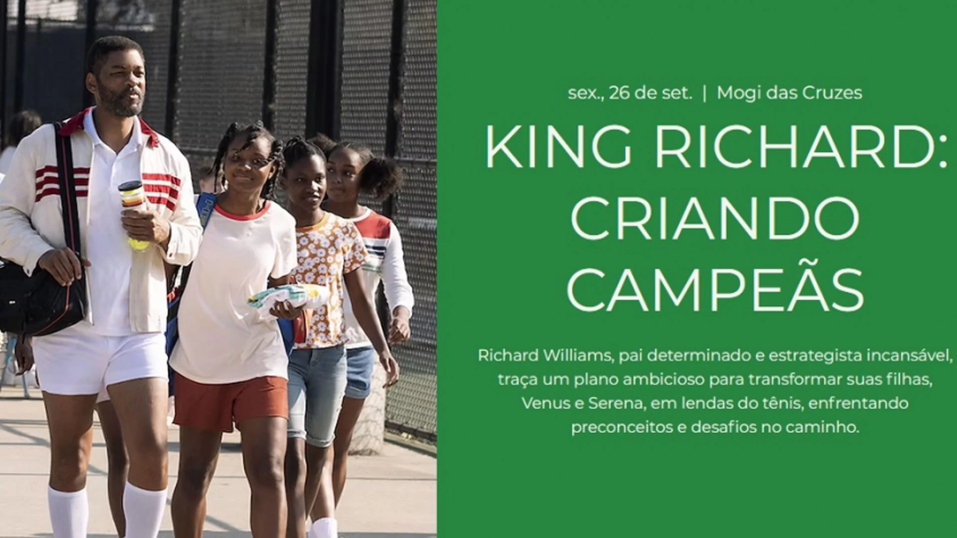 O Projeto Cinema na Praça caiu no gosto dos moradores de condomínios sociais em Mogi das Cruzes e exibirá dois filmes nesta sexta e sábado (26/9 e 27/9), no Parque da Cidade (avenida Jardelina de Almeida Lopes, 451 – Parque Santana). Na sexta-feira (26/9) a atração será o filme “King Richard: Criando Campeãs” e, no sábado (27/9), será exibido “Mufasa: O Rei Leão”. As projeções têm início às 18h30. A entrada é gratuita e não é necessário retirar ingressos. Será a última exibição desta temporada do projeto.