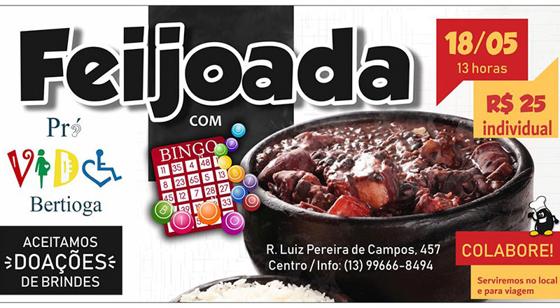 Venha saborear nossa deliciosa feijoada e, de quebra, ajudar nossa associação! Convide seus amigos, traga sua família. Vamos passar uma tarde divertida juntos!