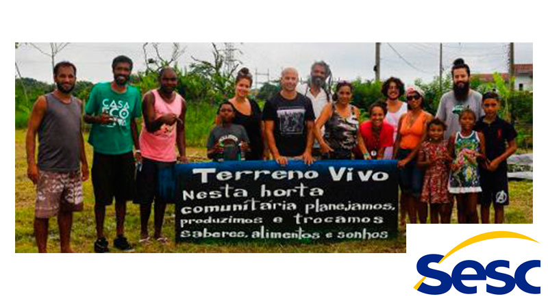 O Terreno Vivo, fruto da parceria do Sesc com a Prefeitura Municipal de Bertioga e sua comunidade, promove encontros de formação em técnicas de produção de alimento, bioconstrução e outras tecnologias sustentáveis, com a finalidade de possibilitar a construção coletiva de uma horta comunitária no bairro Vicente de Carvalho II, em Bertioga.