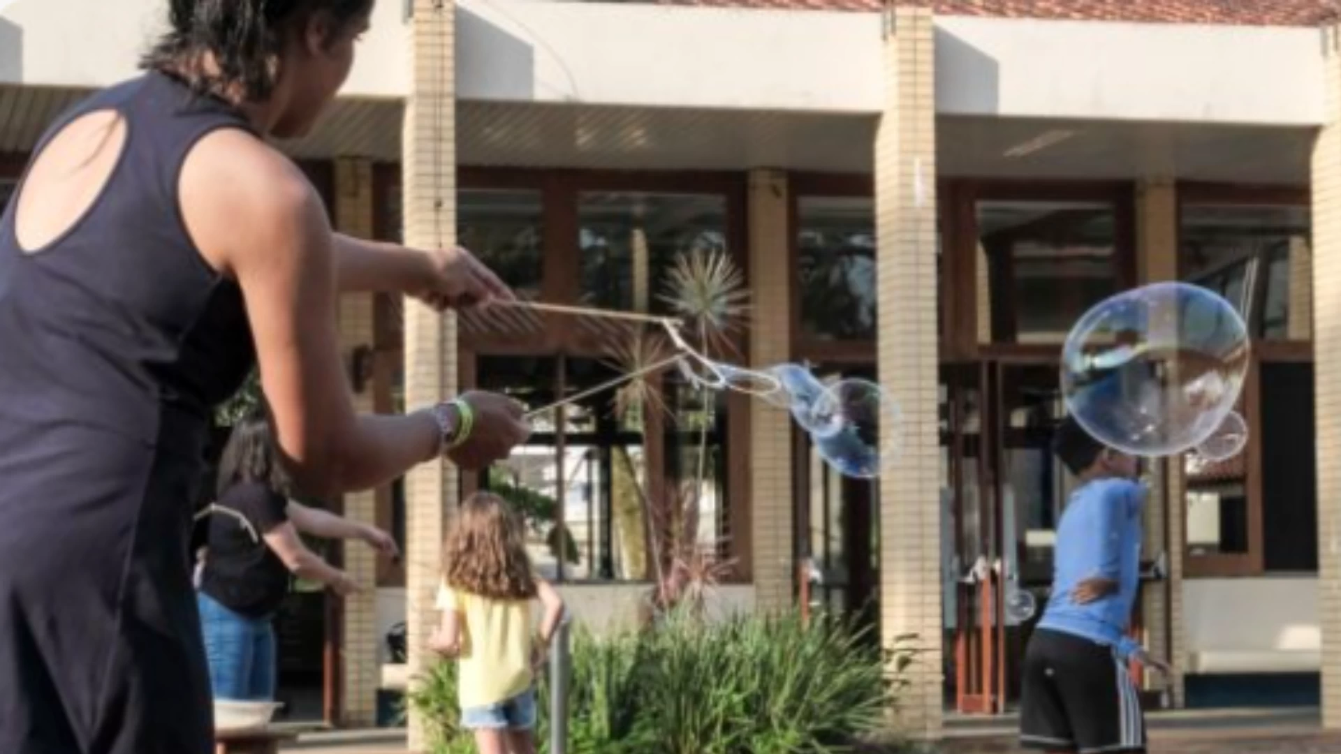 Quem na?o gosta de bolha de saba?o? Imagine uma gigante! Com uma te?cnica simples e lu?dica vamos espalhar bolhas de saba?o gigantes pelo ar.