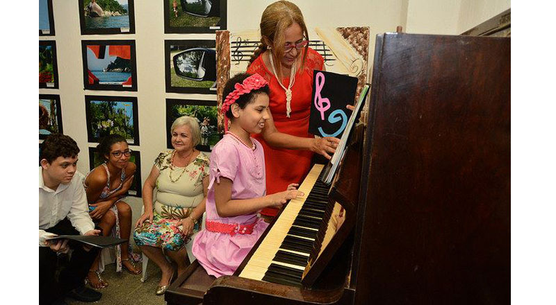 Alunos do projeto da Prefeitura que ensina piano para crianças e jovens especiais, em apresentação recheada de canções natalinas.