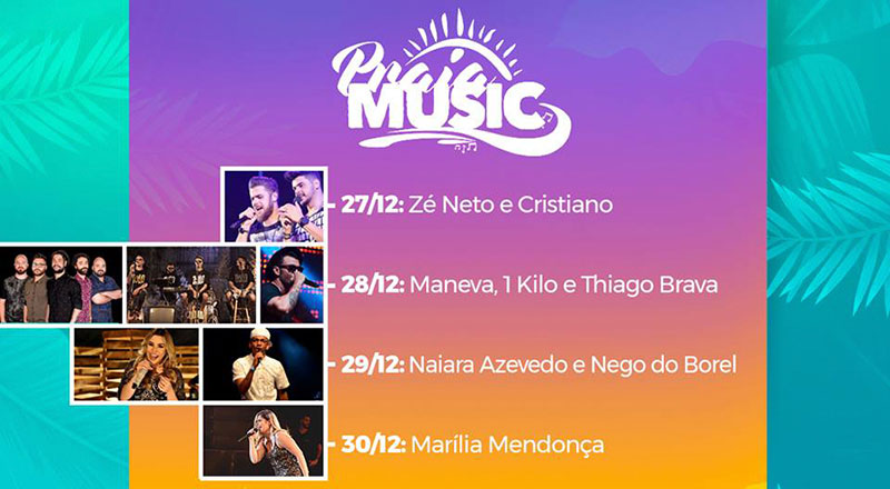 Zé Neto e Cristiano, Maneva, 1 Kilo, Thiago Brava, Naiara Azevedo, Nego do Borel e Marília Mendonça se apresentam em grande arena montada na Praia de São Lourenço