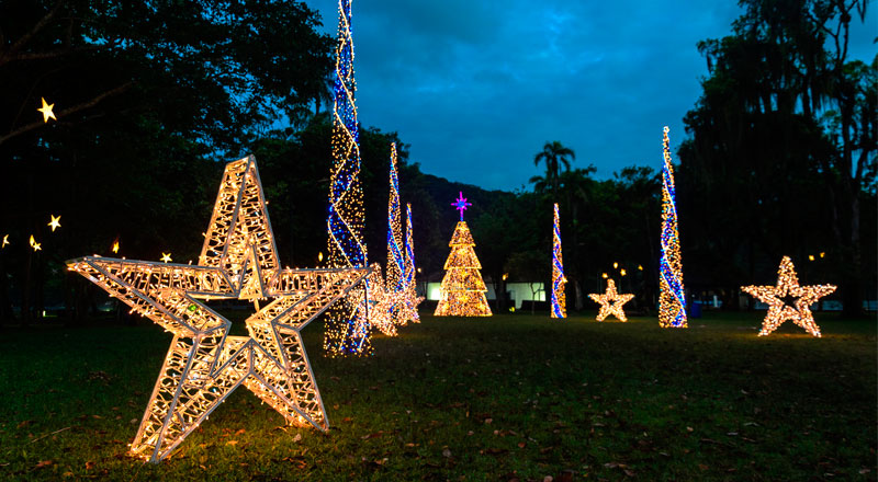 A magia também estará presente na Entrada da Cidade e nos bairros Vicente de Carvalho, Rio da Praia, Indaiá, Chácaras e Boracéia, decorados com belas árvores.