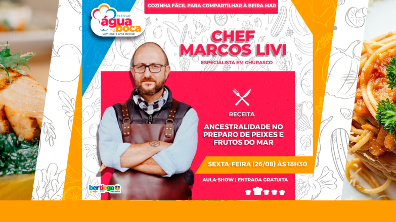 Considerado o Embaixador dos Pampas pelo conhecimento e divulgação da culinária da região sul do país, o chef Marcos Livi dará um show de gastronomia no Água na Boca, apresentando a cultura do fogo e segredos de um bom churrasco.