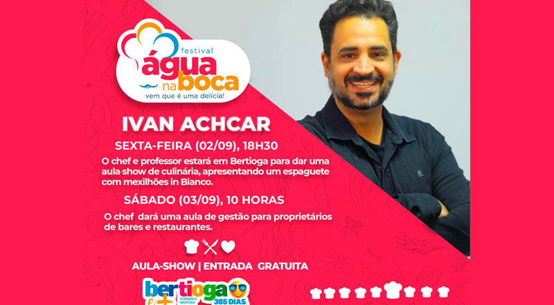 Ivan Achcar, chef e professor, estará em Bertioga para dar uma aula show de culinária, apresentando um espaguete com mexilhões in Bianco.