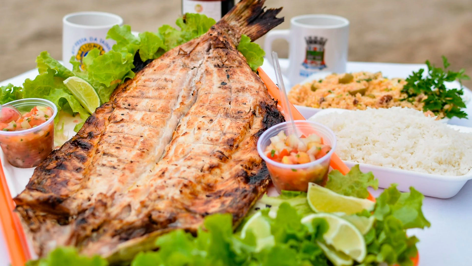 A refeição é servida com uma tainha na brasa espalmada, acompanha duas porções de vinagrete e self-service de arroz, farofa e pão. De acordo com a organização do festival, a tainha custa R$ 135 serve bem até três pessoas. O prato é vendido no dia e local do evento ou através do link: bit.ly/3pc6a5I