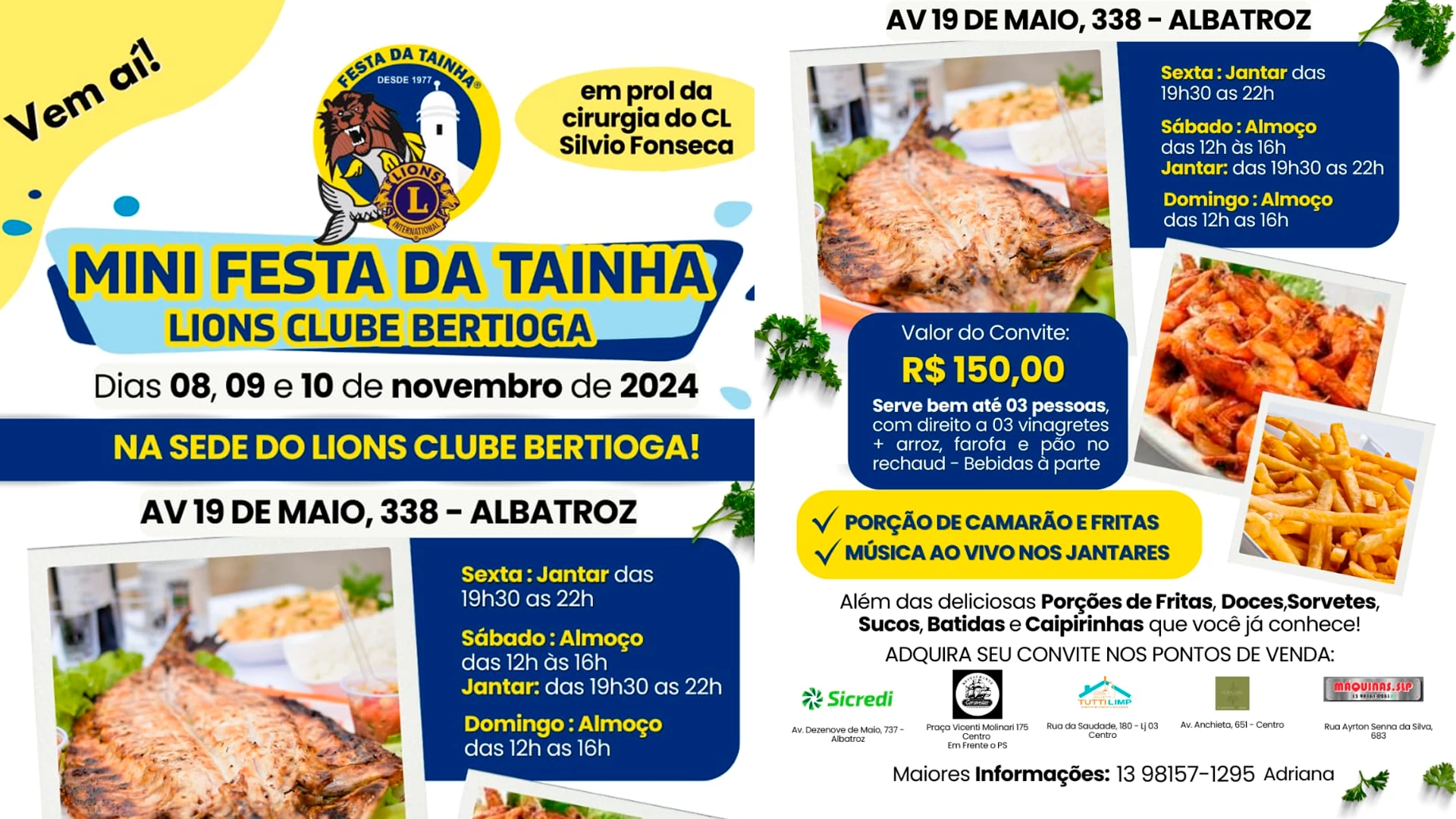 Local: Sede do Lions Clube (Av. 19 de Maio, 338 - Albatroz)