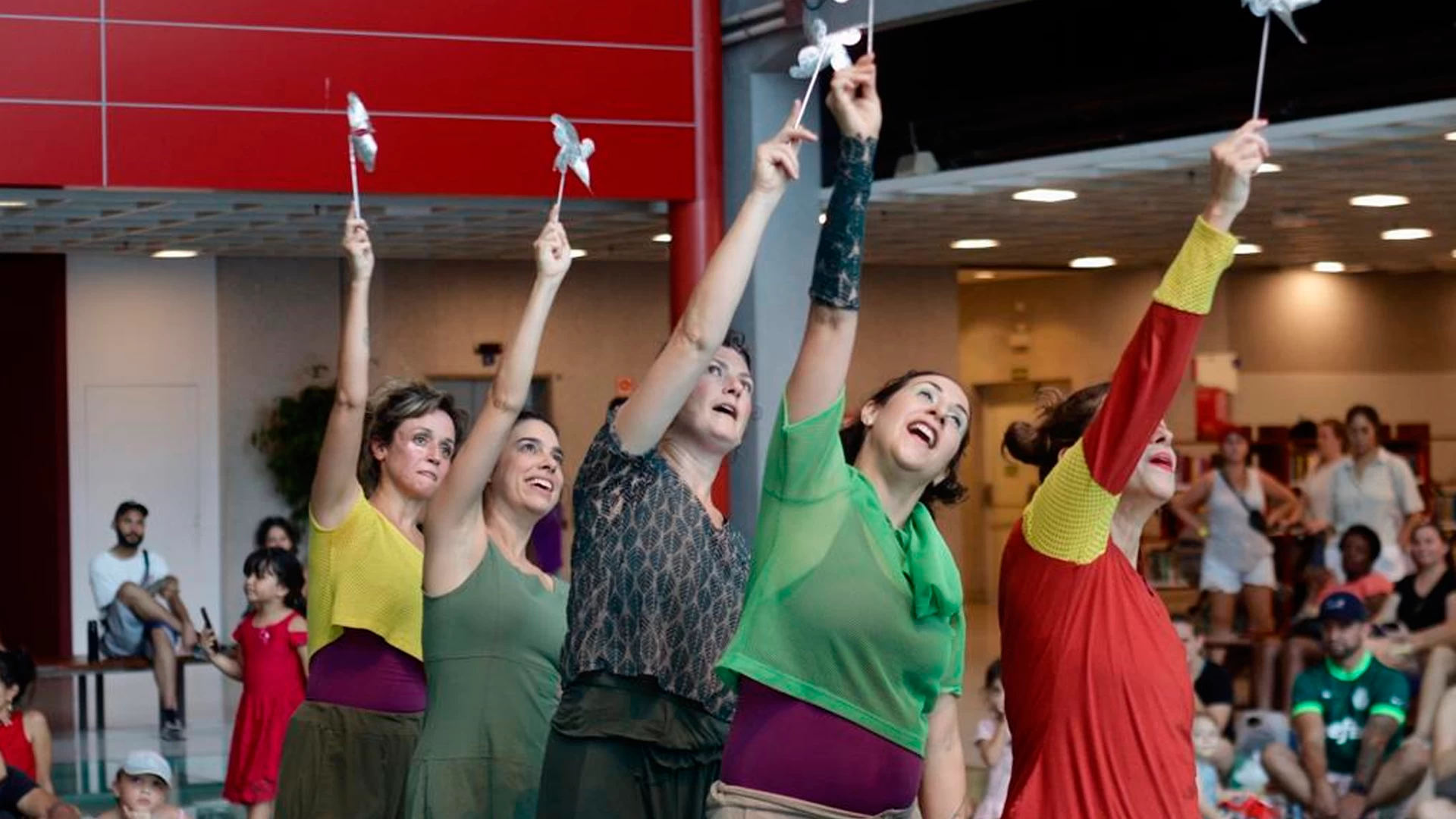 Durante o espetáculo de dança, o público participa tanto apreciando momentos dançados pelo grupo, onde narrativas de histórias vão se desenrolando, quanto sendo convidado a compor com as bailarinas em um espaço coletivo.