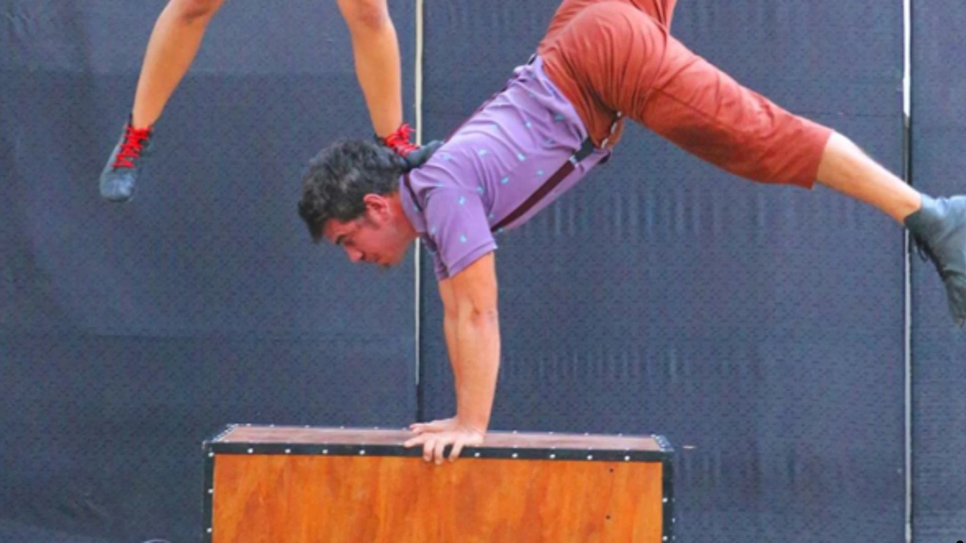 Fidel e Capulita passam pela vida com um antigo baú às costas. Dois personagens comoventes que viajam e sonham juntos usando bolas de malabares, aros hula hoops e velho baú para contar uma história de amizade, humor e circo. Fotos: Cia. Trotamundos