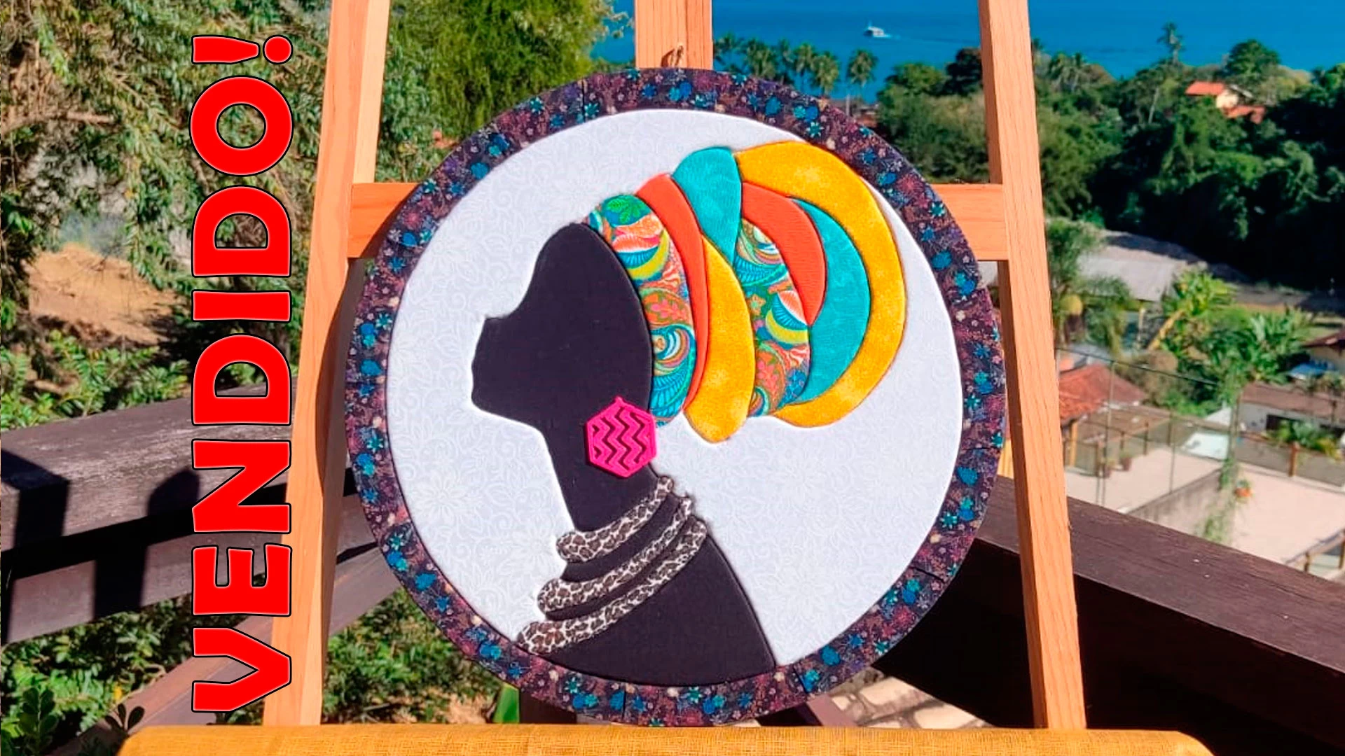 Exposição Africanas Quadro: Penélope Tamanho: 35cm Artista: Camila Mendes Técnica: Patchwork Embutido Instagram: camilamendes.art