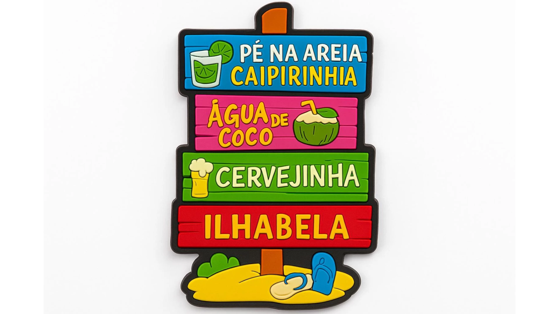 Quem ama Ilhabela vai reconhecer cada detalhe desse ímã! Capital da Vela, terra de natureza exuberante, faróis históricos e vida marinha encantadora! Um pedacinho da ilha para levar com você — até na geladeira!