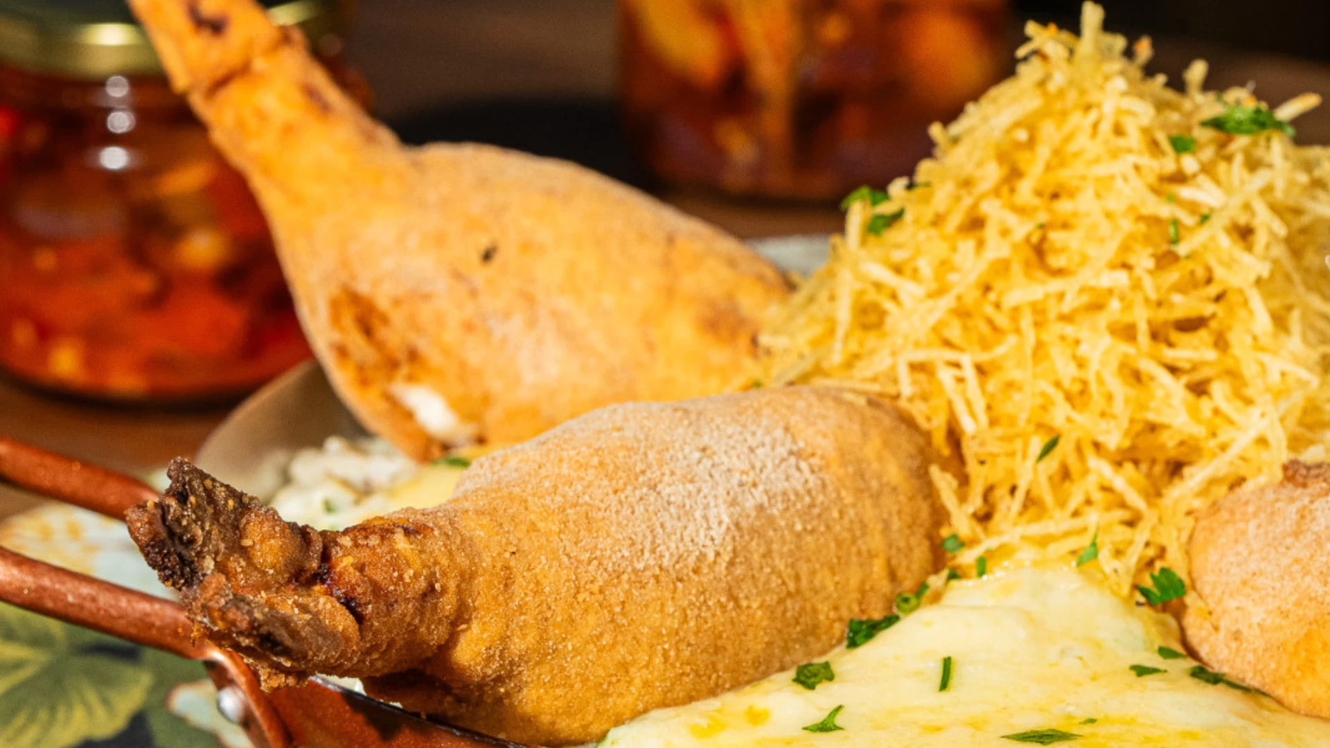4 Camarões Grandes recheados com Catupiry, empanados e Fritos, Servidos com Arroz Cremoso e Finalizados com Batata Palha. Serve 02 pessoas.
