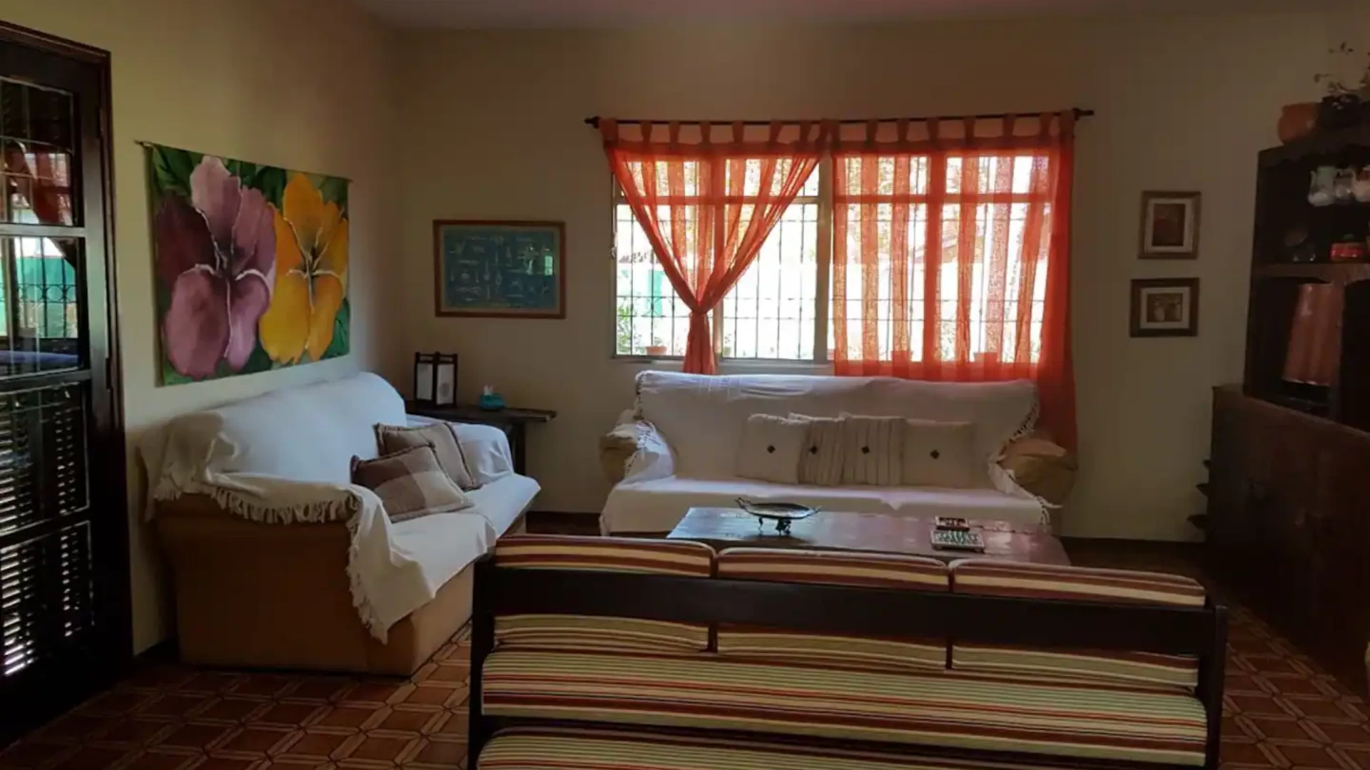 A casa é completa , segura e aconchegante! Com 3 quartos, 2 banheiros completos e um lavabo.