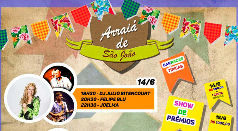 Já no domingo (16), cantarão bandas locais: DJ Ivair às 18h30, Samba Sinhá às 19h30, Captadores às 20h30 e Geração Sertaneja às 22h30. Todos os dias haverá sorteios de prêmios.