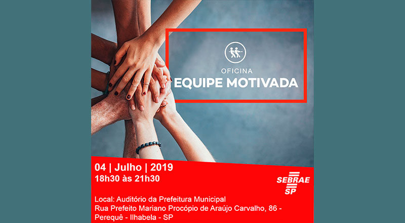 O Posto “Sebrae Aqui” de Ilhabela, por intermédio da Secretaria Municipal de Desenvolvimento Econômico e do Turismo, realiza a oficina “Equipe Motivada”, para quem deseja receber orientações sobre boas práticas para a gestão de pessoas. A oficina será realizada no dia 4 de julho, a partir das 18h30, no auditório do Paço Municipal, no Perequê.