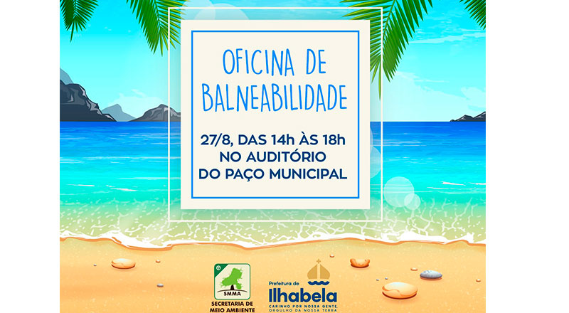 A Prefeitura de Ilhabela, por meio da Secretaria de Meio Ambiente, realiza no dia 27 de agosto, a primeira oficina municipal de Balneabilidade de Ilhabela, que será realizada das 14h às 18h no Auditório do Paço Municipal.