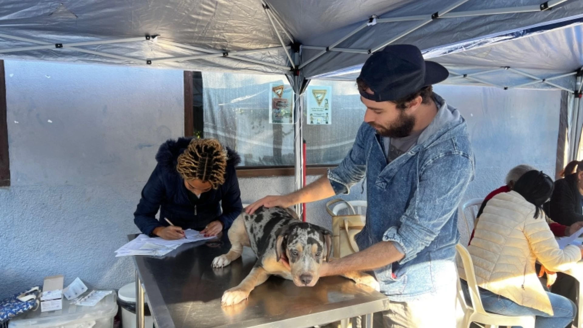 Durante as ações, uma equipe completa — formada por médicos veterinários, motorista, auxiliar de tratador e administrativo — realiza atendimentos com consultas, vacinação, vermifugação, microchipagem e agendamento de castração de cães e gatos.