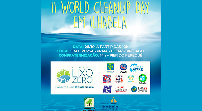 A programação da Semana do Lixo Zero, será realizada entre os dias 21 e 26, uma promoção da Prefeitura de Ilhabela, por meio da Secretaria de Meio Ambiente, trazendo a segunda edição do World Cleanup Day (Mutirão de Limpeza dos Mares). A ação ocorrerá no dia 26 (sábado), a partir das 10h, em diversas praias da cidade.