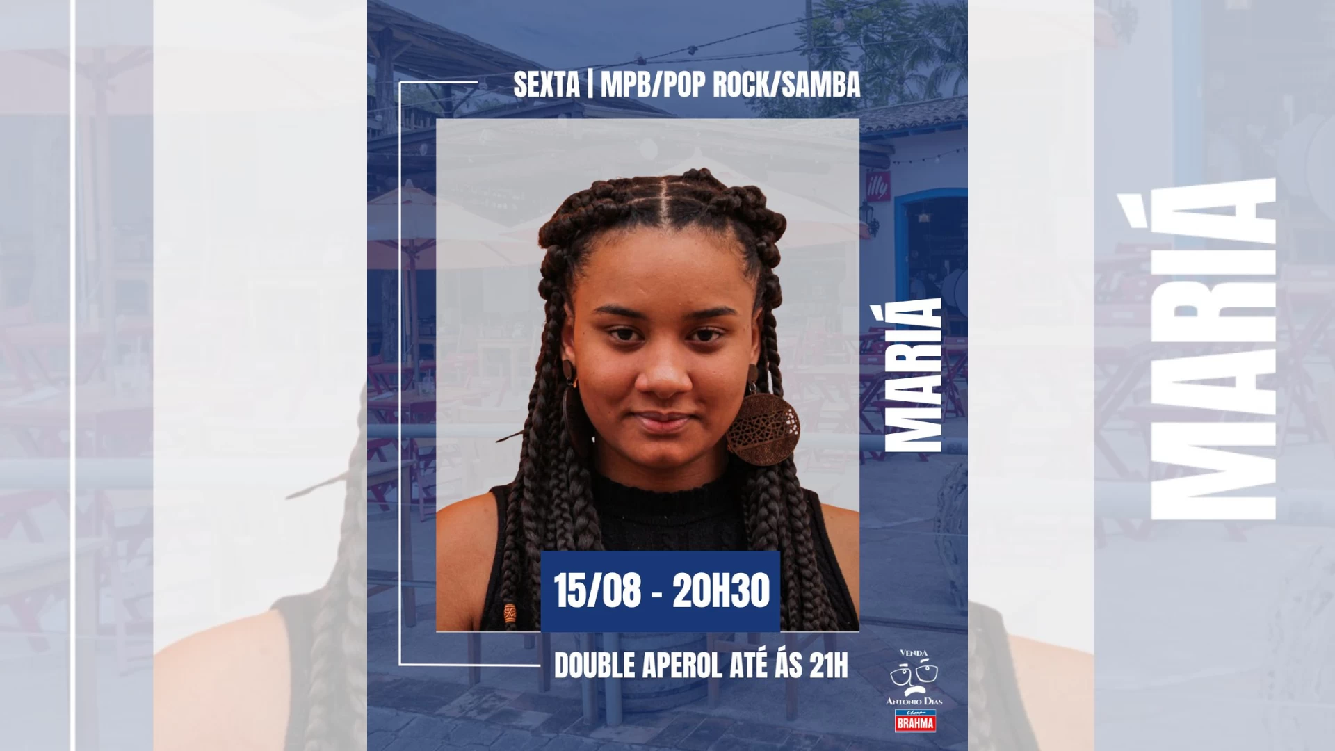 Sexta MPB /Pop-Rock/ Samba - Mariá no Antônio Dias Data: 15/08/2025 Horário: 20:30 Local: Av Princesa Isabel, 683 - Perequé, Ilhabela (MPB /Pop-Rock/ Samba)