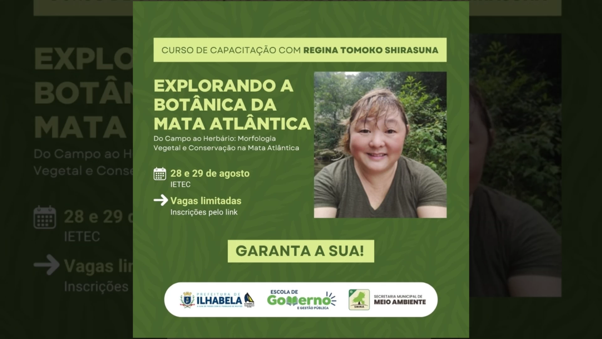 Nos dias 28 e 29 de agosto, a Prefeitura de Ilhabela, por meio da Secretaria Municipal de Meio Ambiente e da Escola de Governo, promove o curso de capacitação “Explorando a Botânica da Mata Atlântica – Do campo ao herbário: Morfologia Vegetal e Conservação” na IETEC (Ilhabela Escola Técnica).