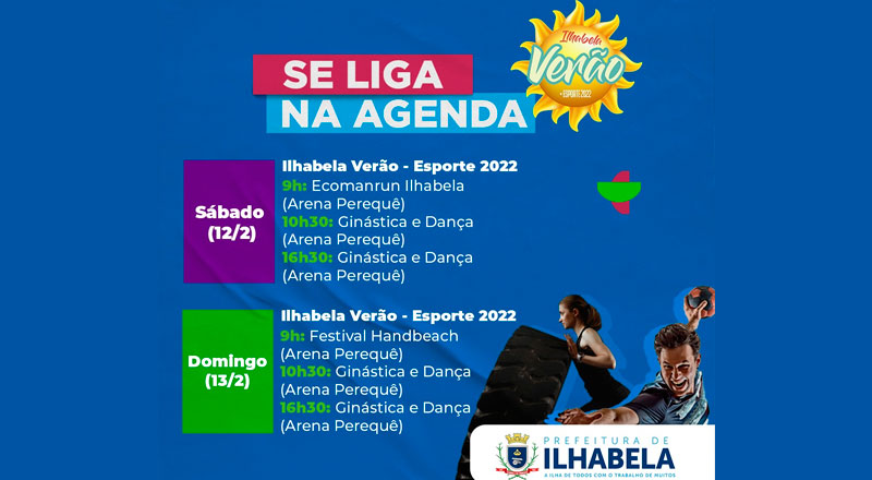 A arena do Verão Ilhabela - Esporte 2022, na Praia do Perequê, terá Corrida com obstáculos, handbeach, ginástica e dança fazem parte do roteiro esportivo!