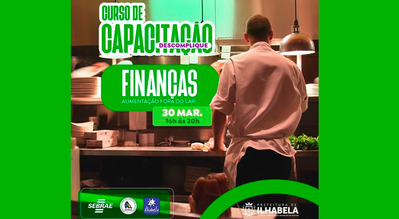 O SEBRAE, em parceria com a Prefeitura de Ilhabela, realizará no dia 30 de março o curso de capacitação Descomplique Finanças, destinado a área de AFL (Alimentação Fora do Lar).