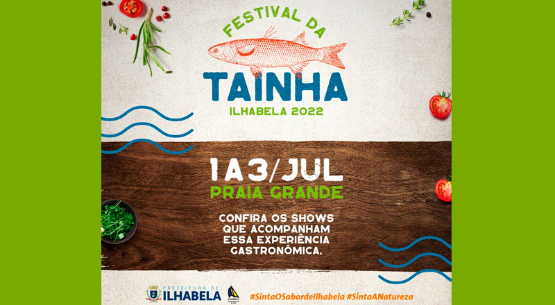 Vem aí o tradicional Festival da Tainha 2022, que será realizado de 1 a 3 de julho, na Praia Grande, região sul da cidade. Promovido pela Prefeitura de Ilhabela, a programação terá diversas iguarias voltadas à tainha e shows de Luciana Mello, a dupla sertaneja Henrique e Diego e bandas locais.