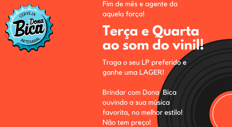 Terça e Quarta Som do Vinil : traga seu LP preferido e ganhe uma LAGER (300ml) Dona Bica!