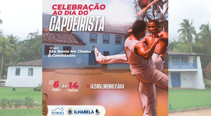 A Prefeitura de Ilhabela, por meio da Fundação Arte e Cultura de Ilhabela e Secretaria de Cultura, promove neste sábado (6/8), a partir das 14h, uma Roda de Capoeira especial, no Parque Fazenda Engenho D’Água, com o grupo São Bento Me Chama e convidados.
