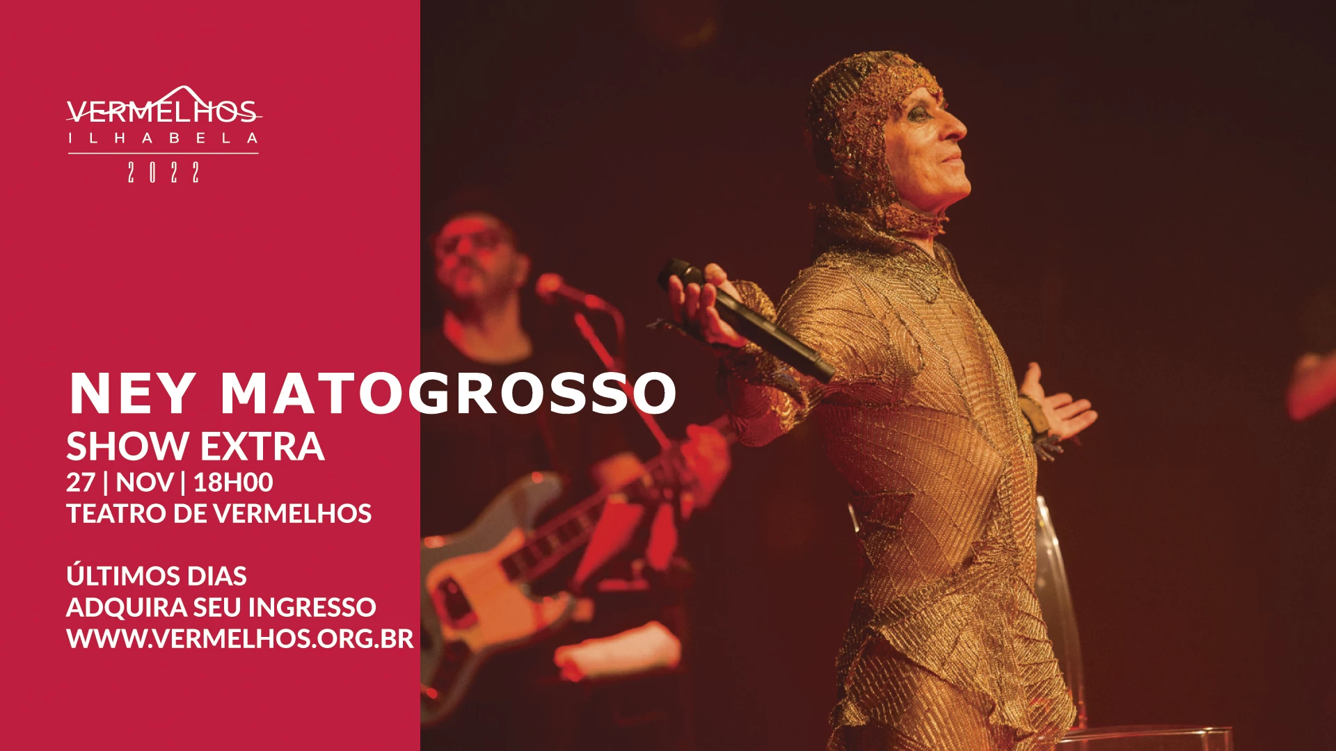 Depois do sucesso absoluto de crítica e público em várias cidades, Ney Matogrosso se apresenta no Teatro de Vermelhos com o show Bloco na rua. O repertório do show mistura sucessos de Ney e e de outras pessoas. O figurino, sempre aguardado com expectativa em se tratando de um show de Ney Matogrosso, é do estilista Lino Villaventura, enquanto Luiz Stein assina o cenário composto por projeções e Juarez Farinon a luz do espetáculo. A banda, que acompanhou Ney nos últimos anos, reúne Sacha Amback (direção musical e teclado), Marcos Suzano e Felipe Roseno (percussão), Dunga (baixo), MauricioNegão (guitarra), AquilesMoraes(trompete) e Everson Moraes (trombone).