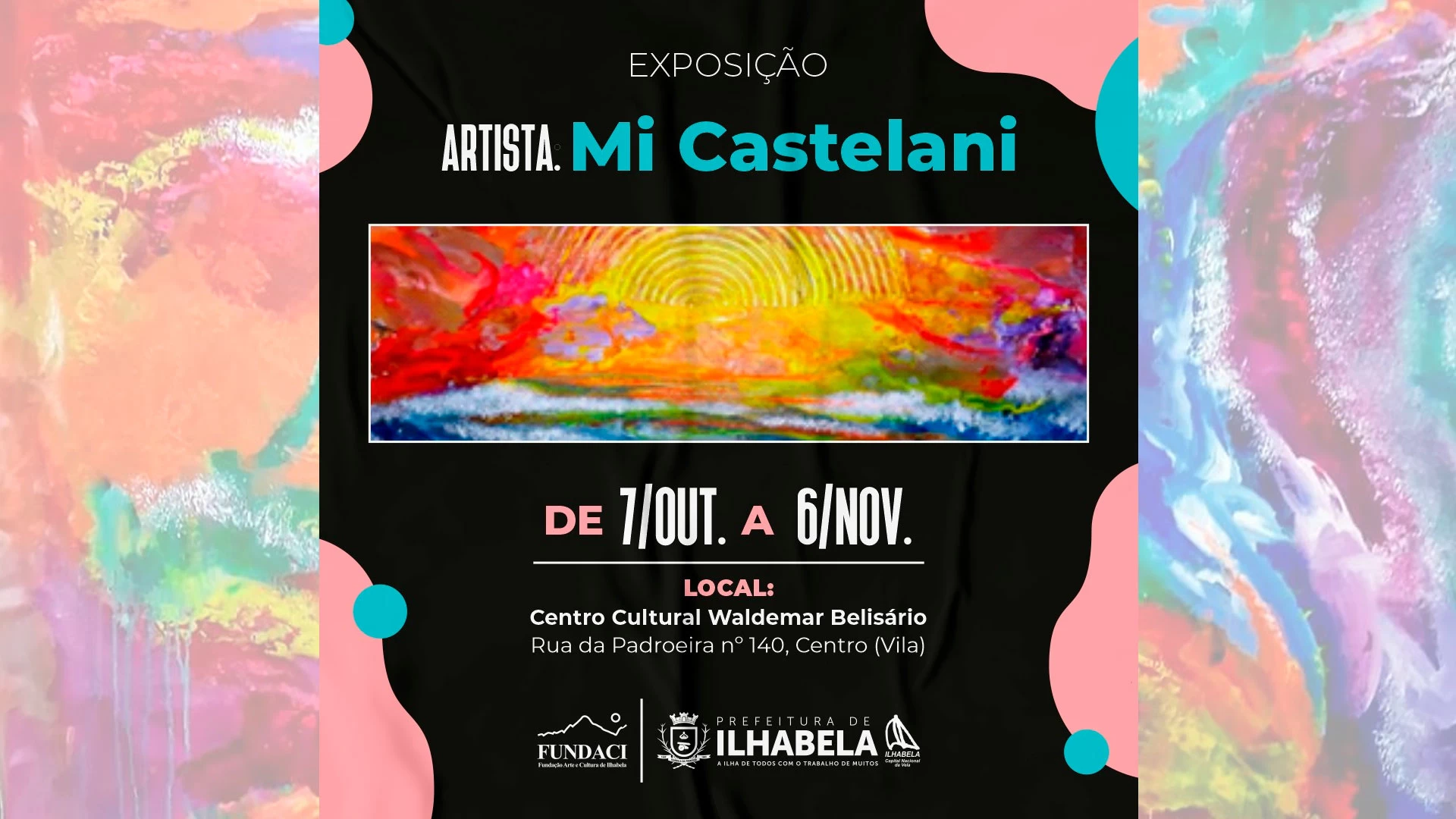 A artista plástica e educadora, Mi Castelani, apresenta suas obras, de 7 de outubro a 6 de novembro, no Centro Cultural Waldemar Belisário, localizado na Vila - centro histórico de Ilhabela.