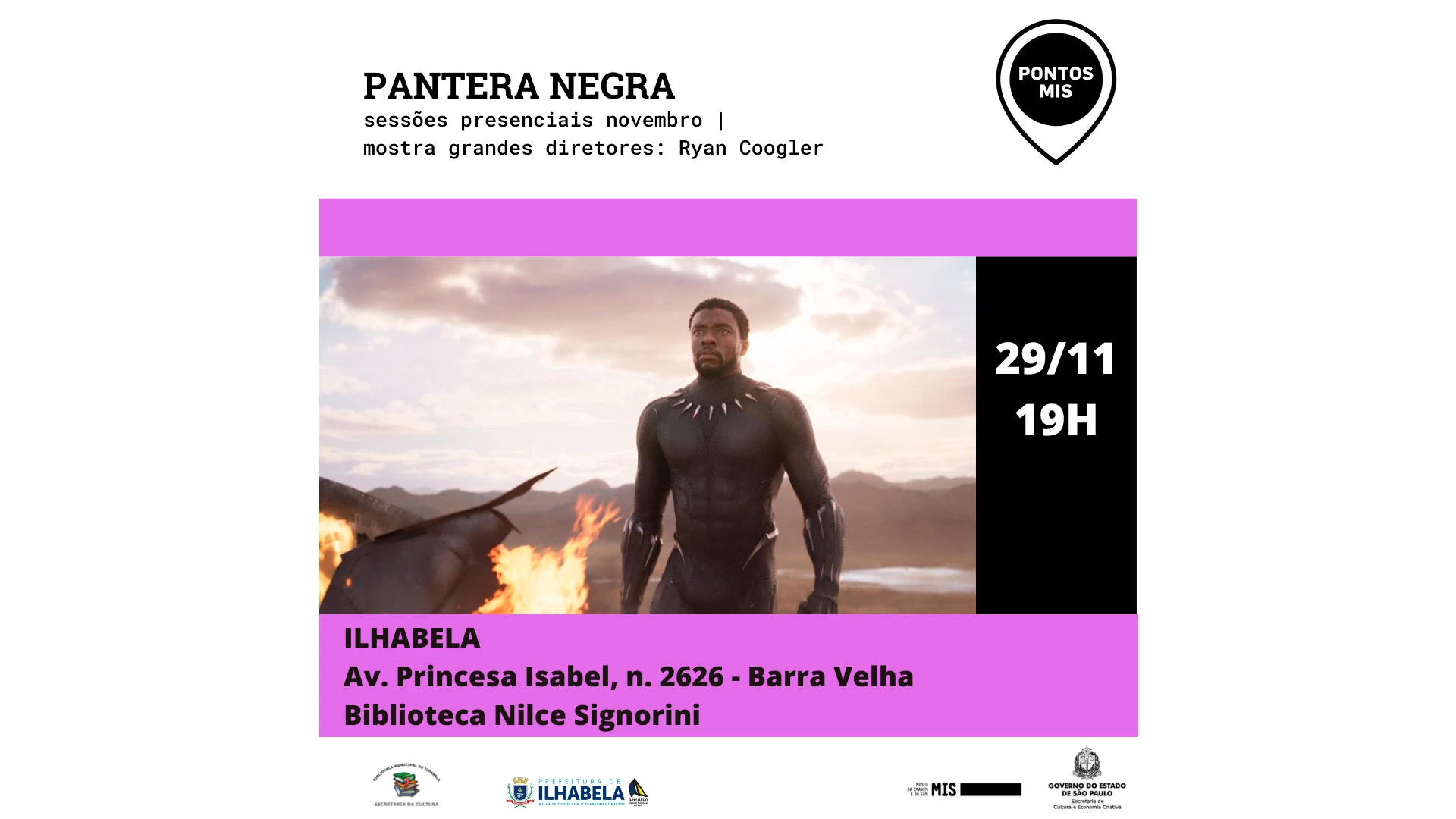 Filme “Pantera Negra” será exibido no dia 29 de novembro, às 19h, na Biblioteca e Videoteca da Barra Velha. A classificação etária do filme é 14 anos. O longa-metragem Pantera Negra, conta a história de T’Challa, um jovem rei que precisa salvar o destino de sua família e de sua nação. Localizado na África subsaariana, Wakanda é um reino repleto de riqueza e tecnologia, que para se proteger da ambição do homem, se mantém secreto aos olhos do restante da humanidade. Após a morte do rei T’Chaka (John Kani), o príncipe T’Challa (Chadwick Boseman) regressa para casa e passa por um teste final, para assim assumir o trono de Wakanda e se tornar o Pantera Negra. Porém, um misterioso inimigo surge e T’Challa precisa reunir forças para salvar Wakanda.